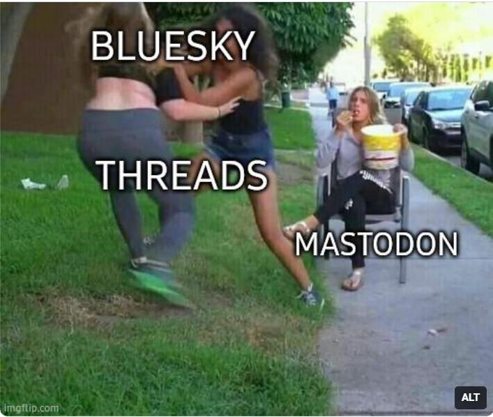 Personnellement, je suis agnostique, et m'efforcerai de rester à l'écart de la rixe, si elle devait éclater. Il y a quelque temps, en simple observateur, j'ai testé Mastodon, et m'y suis rapidement senti perdu sur un îlot désertique au sein d'un vaste archipel. Disons que dans le rapport simplicité d'utilisation / crapulerie de l'actionnariat, ma balance personnelle, comme celle de l'excellent média écolo Bon Pote, penche plutôt pour Blue Sky, réseau décentralisé mais fédérateur de centres d'intérêt différents. D'autant que je n'ai jamais pris la Silicon Valley pour un repaire de philanthropes obsédés du service client (pour info, je suis depuis trois semaines interdit d'accès à mon propre compte Instagram, sous couvert de "protection avancée"