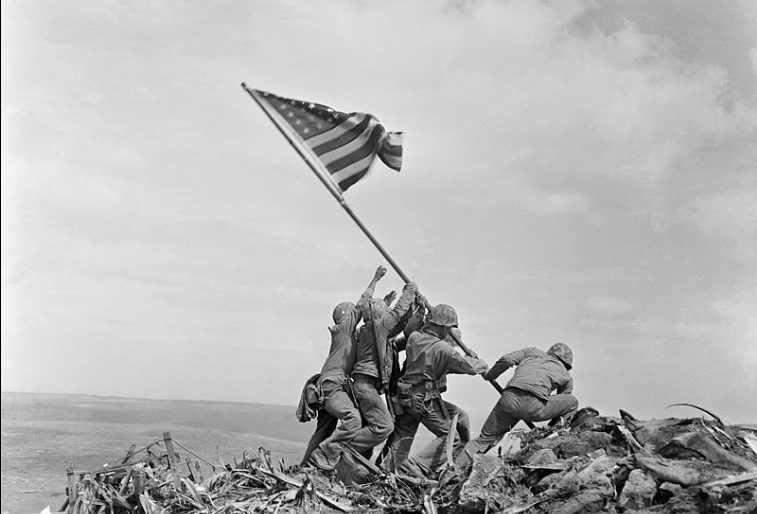 ...et, quelques mois plus tôt, à Iwo Jima, les vainqueurs américains au coeur de la guerre du Pacifique.