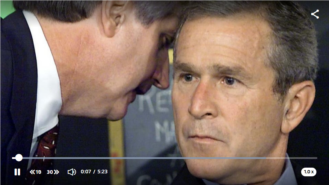 Un collaborateur chuchote à l'oreille du président impassible. D'abord, chasser de son souvenir la reminiscence inévitable mais non pertinente, de George W. Bush apprenant, le 11 septembre 2001, alors qu'il visite une école de Floride, le choc du deuxième avion contre la deuxième tour du World Trade Center. C'est à dire apprenant que les USA sont "under attack"