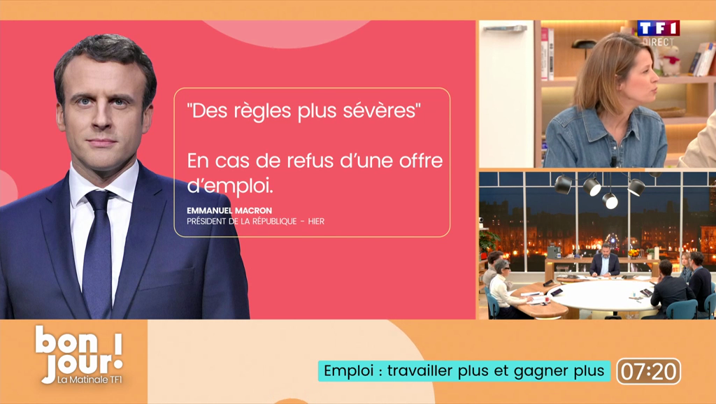 Résultat ? Une grande partie de l'émission du 17 janvier a été consacrée au débrief de la conférence de presse de Macron. La plupart des sujets avancés par Macron ont été abordés: énième réforme de l'assurance-chômage, port de l'uniforme à l'école, création d'une cérémonie de remise des diplômes, création d'un "congé de naissance" de six mois pour rebooster la natalité, etc. Mais à chaque fois, sous un angle pédago ("On va tout vous expliquer"