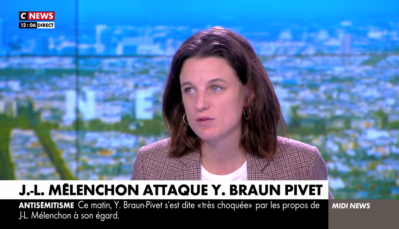 , car elle a reçu de nombreuses menaces de mort et de messages antisémites ces derniers mois. Relancée par Nicolas Demorand pour préciser ses propos sur la nature du tweet de Mélenchon, Braun-Pivet peine à poursuivre et clôt la discussion par cette phrase : "Je suis désolée, mais je suis très choquée, en fait".
