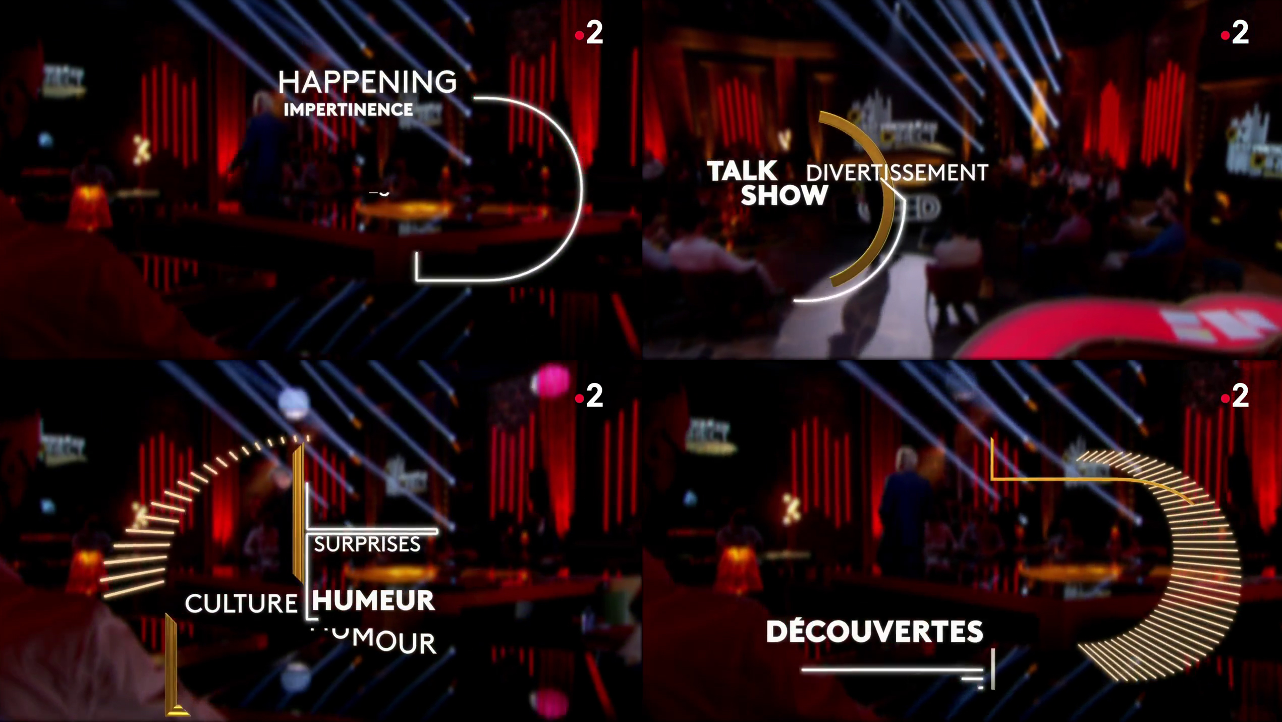 "Divertissement", "Culture", "Rencontres", "Humour", "Humeur", "Surprises", "Happening", "Impertinence", "Découvertes"