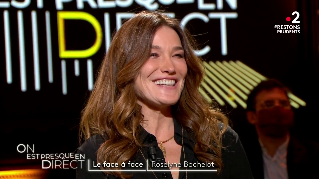 Bruni : "Ah non, ah non, moi je suis nulle en questions, et en plus j’adore Roselyne. Elle fait tout ce qu’elle peut et je la remercie pour son courage"