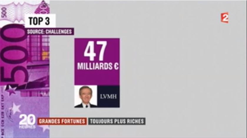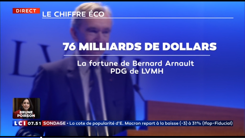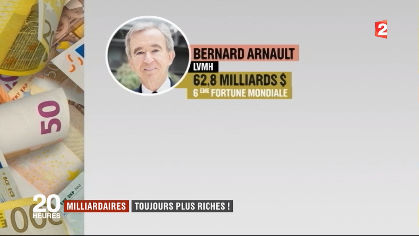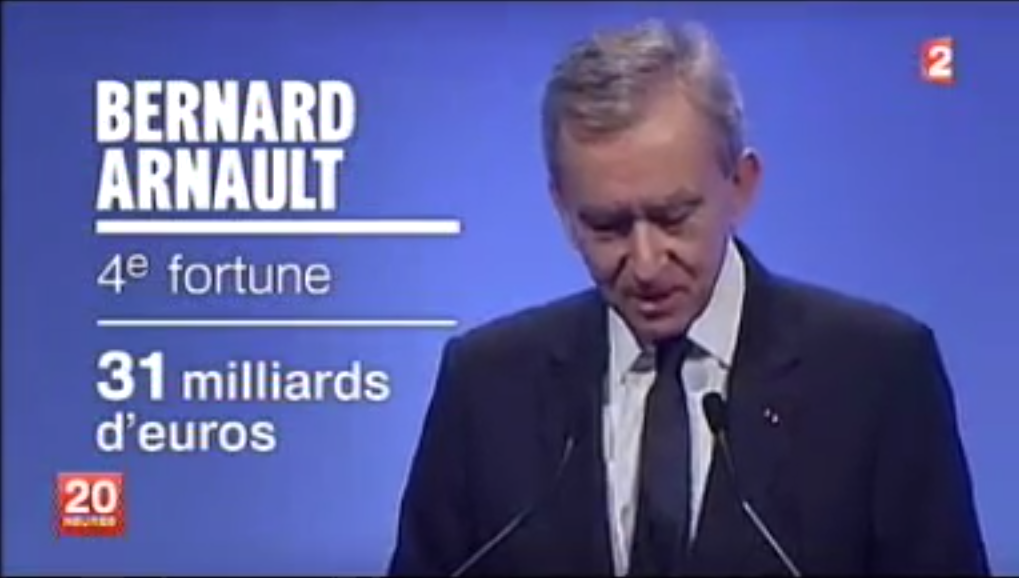 , explique la voix off. Depuis janvier le patrimoine de Bernard Arnault a augmenté de 32 milliards de dollars”