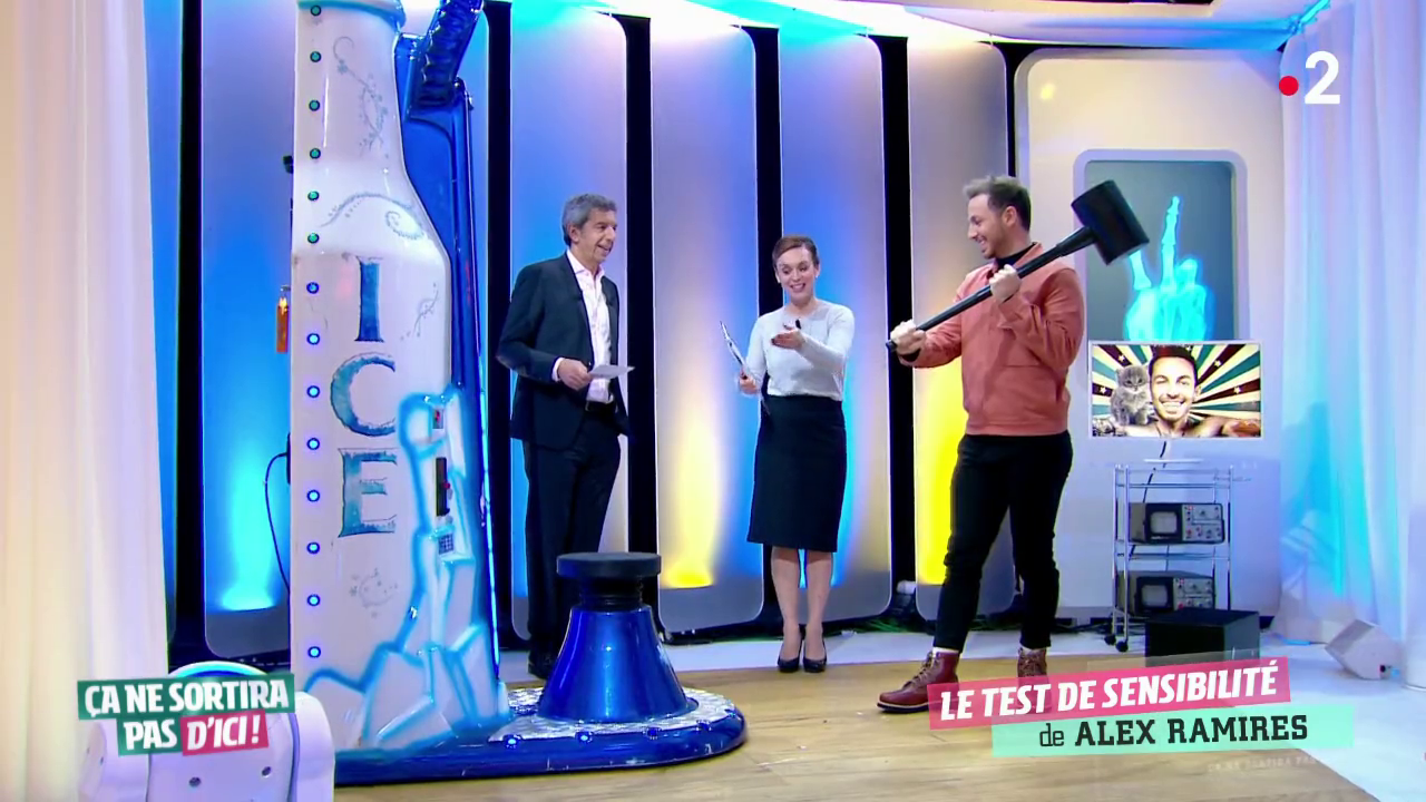 Et c’est comme ça pendant près de 2 heures. Les séquences malaises s’enchaînent. Par exemple, chaque invité passe un test. L’humoriste, Alex Ramires, est venu faire la promo de son spectacle, dans lequel il parle de son homosexualité. Euh, homosexualité ? Bah tiens, on n’a qu’à lui faire “le test de sensibilité”