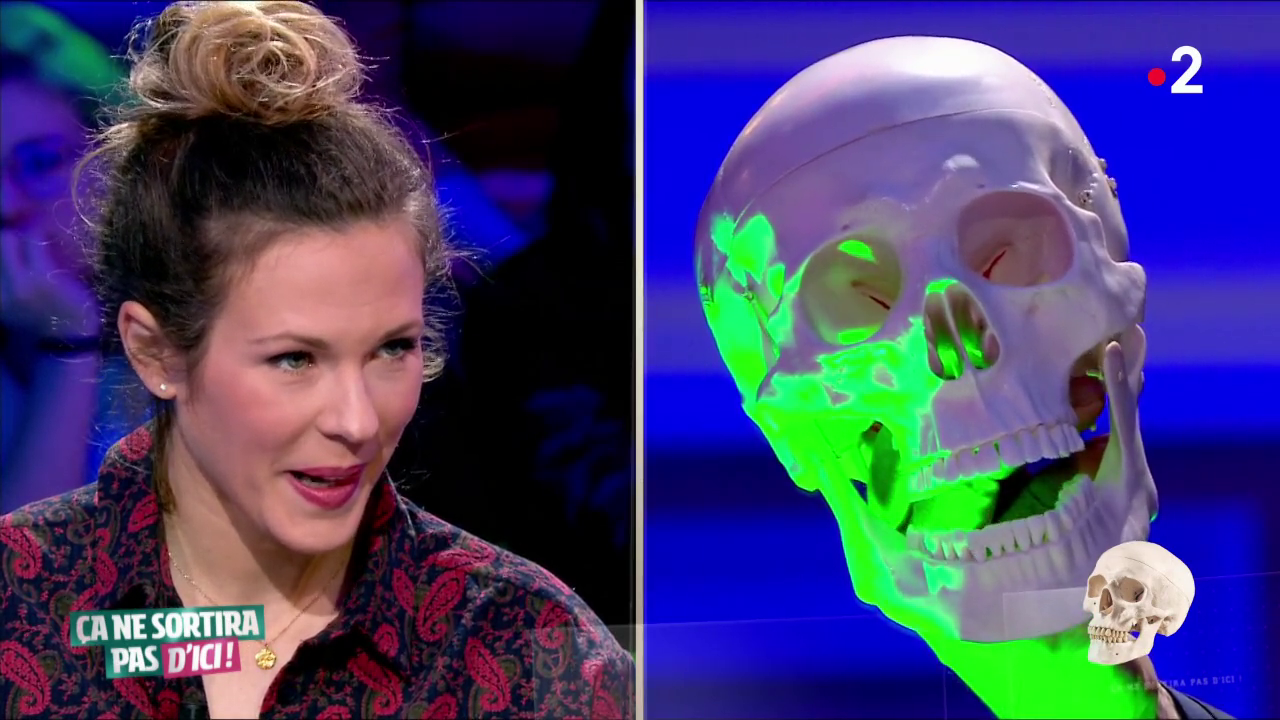 Après le dossier médical, place à Jean-Claude. Euh, Jean-Claude ? Oui, c'est un squelette qui pose une question qui tue avec une voix sortie d’outre-tombe. Pour Lorie, ce sera une question sur la maternité : “Lorie, c’est une vraie tristesse pour vous de ne pas encore être mère. Est-ce pour ça que vous vous occupez autant des enfants malades ?”
