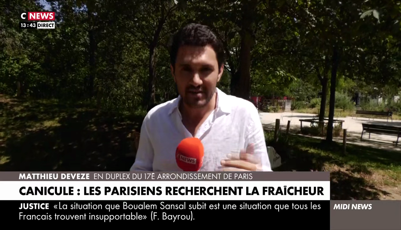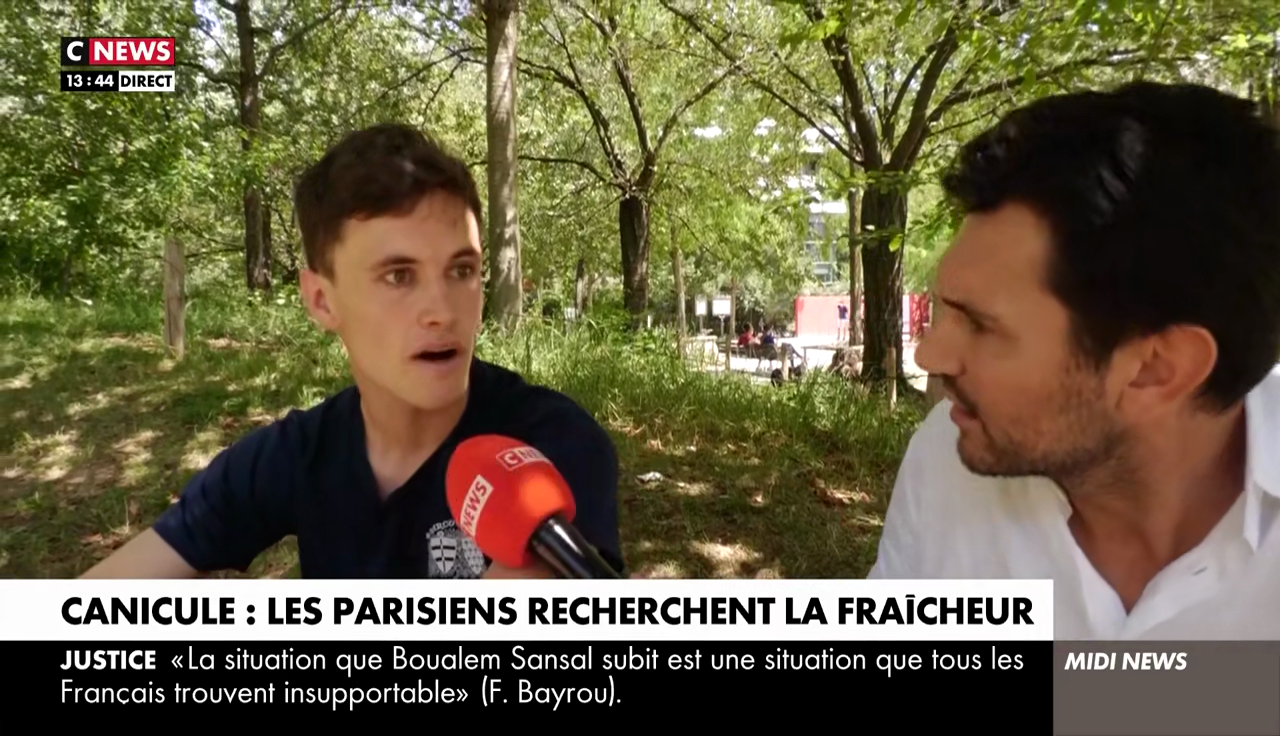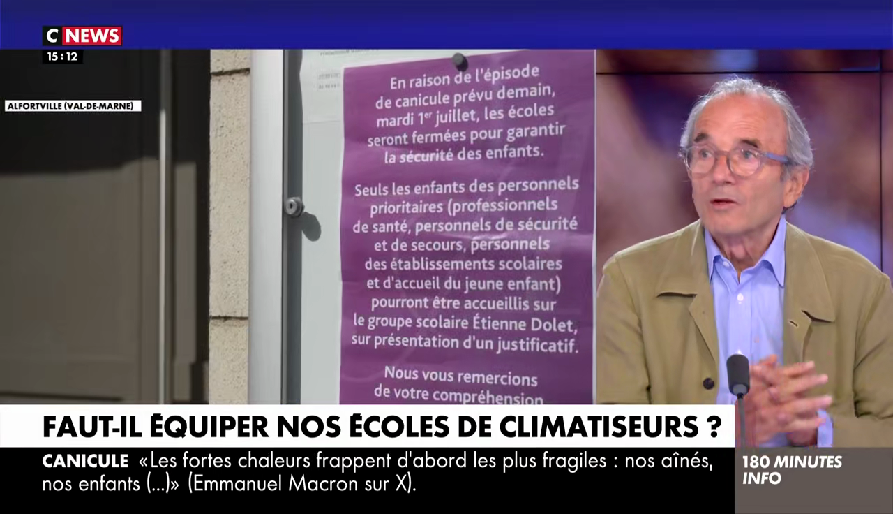 Mais pendant ces trois jours, les températures extérieures ont également grimpé. Et si CNews ne parle quasiment jamais de climat comme vous l'a expliqué notre collègue Clara Barge (seulement 2,2% du temps d'antenne en juin, d'après les décomptes de l'association Quota Climat), eh bien là, c'était difficile de passer à côté…