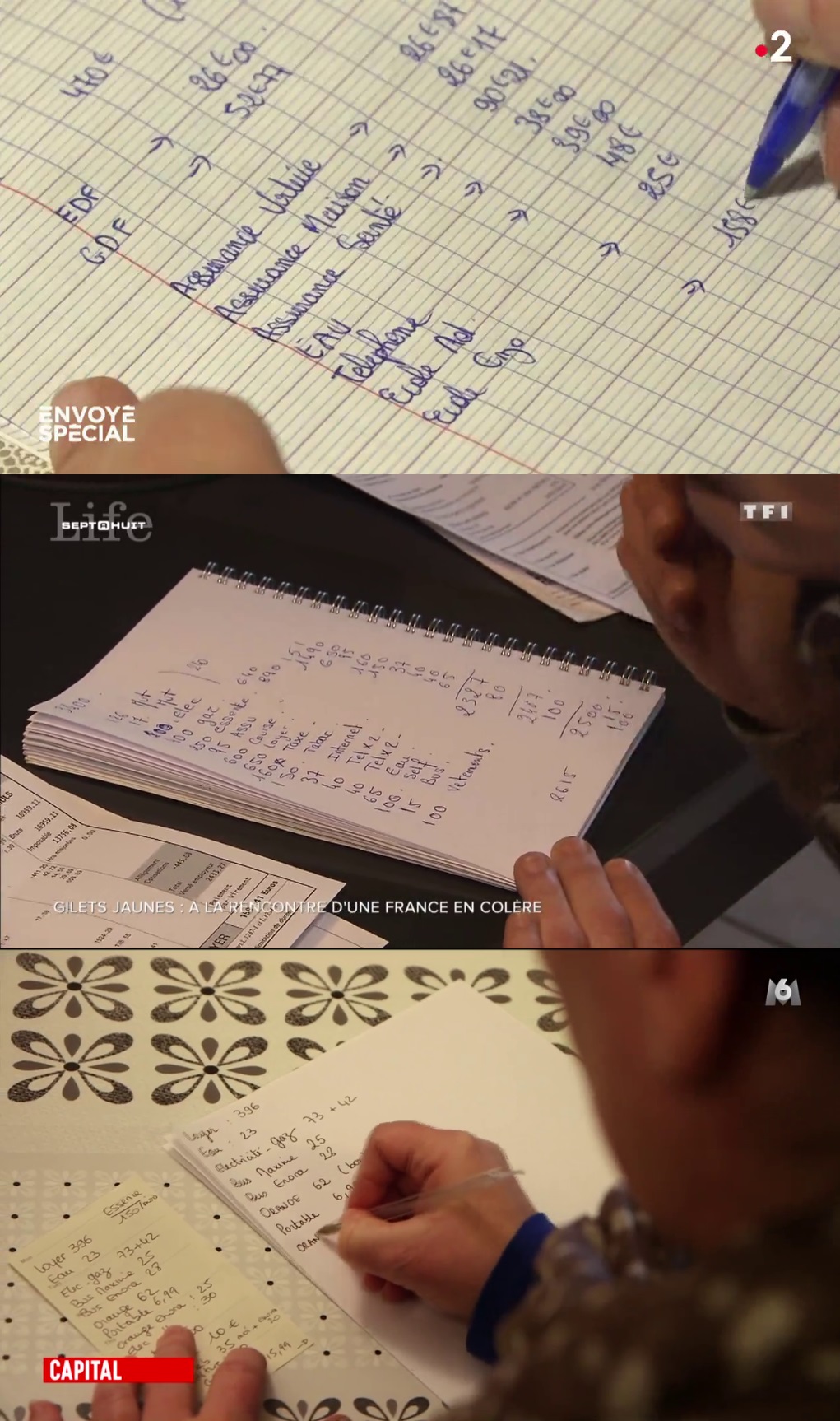 Et ça tombe bien : on les voit toujours faire leurs comptes sur des cahiers d’écolier. C’était le cas sur M6, mais aussi sur TF1, ou encore France 2 cette semaine avec Laeticia et Delphine :