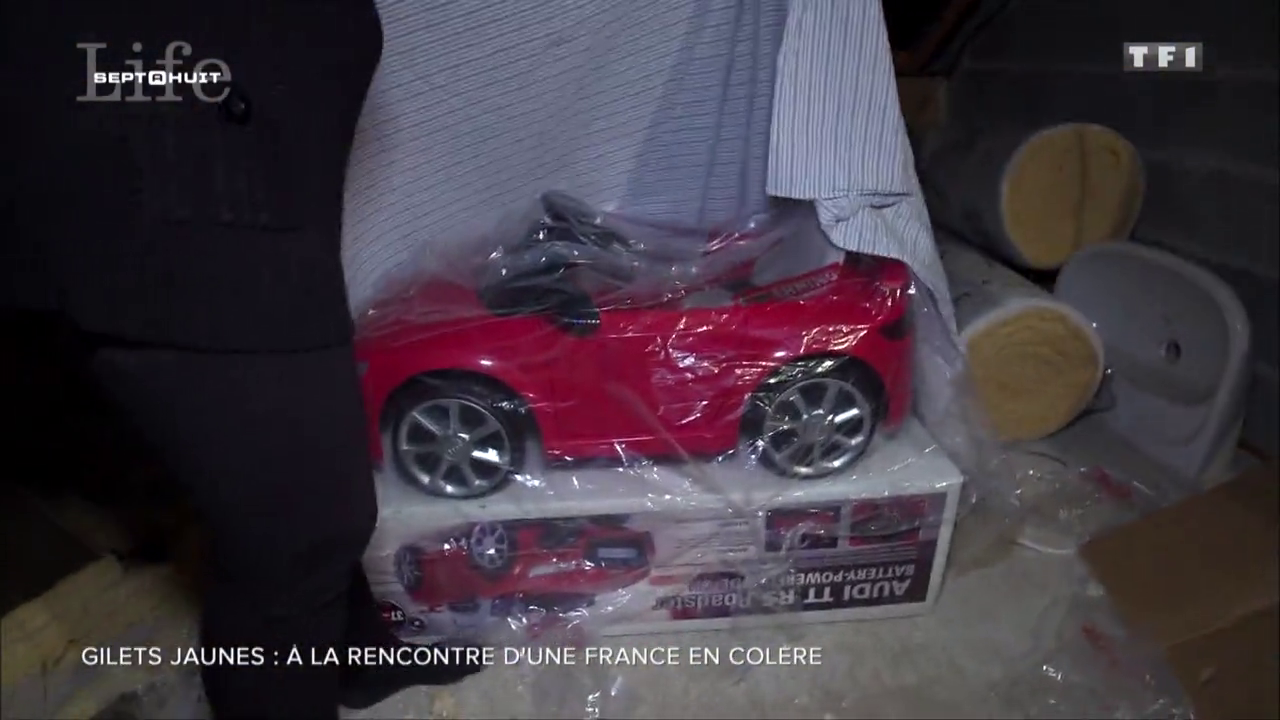 Au grenier, Françoise montre à la journaliste la belle voiture électrique qu’ils vont offrir au plus petit des enfants :