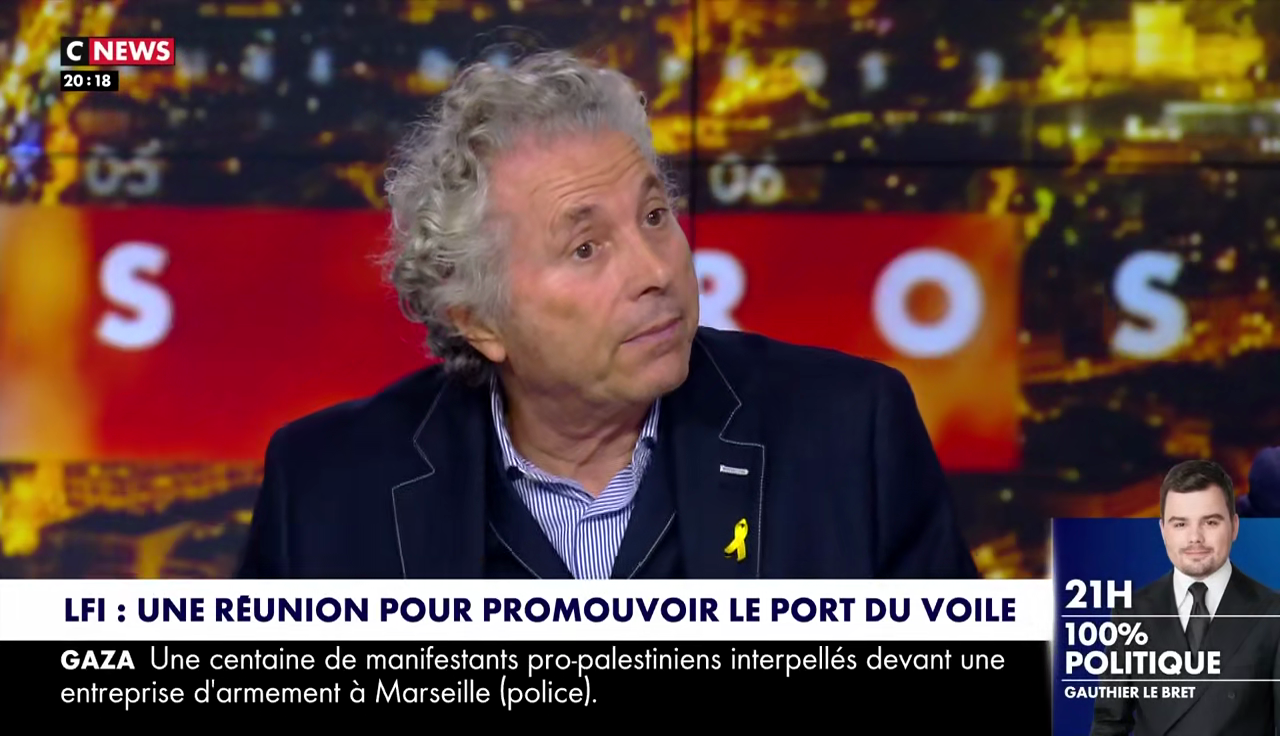 [le voile] n'est pas de culture française que LFI le défend. Tout ce qui est de culture française, tout ce qui est français, tout ce qui est blanc est détestable pour LFI. Donc ils sont dans une logique impeccable."