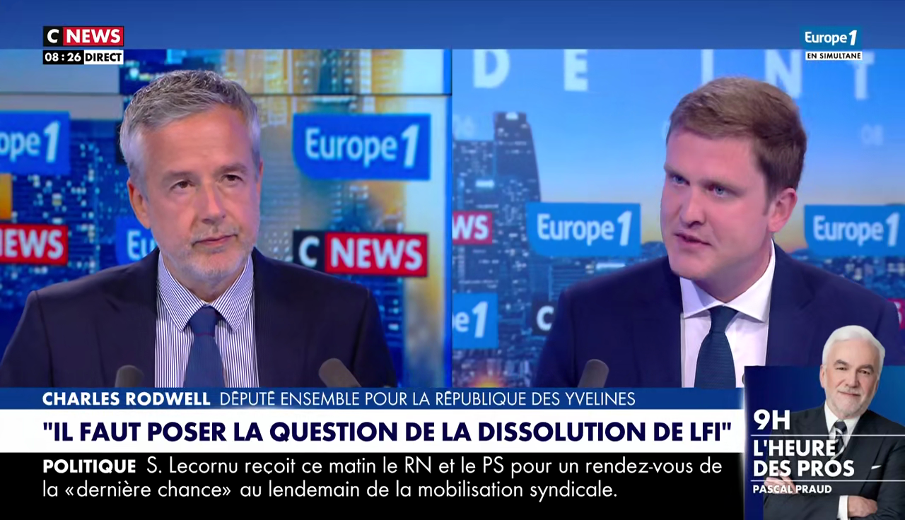Face à un député macroniste, le journaliste de la matinale, Romain Desarbres, ose même cette question : "Un élu LFI des Hauts de France a quitté son groupe au conseil régional estimant que son groupe était infiltré par les Frères musulmans, ce qui est extrêmement grave. Est-ce qu'il faut aller jusqu'à la dissolution de la France insoumise ?"