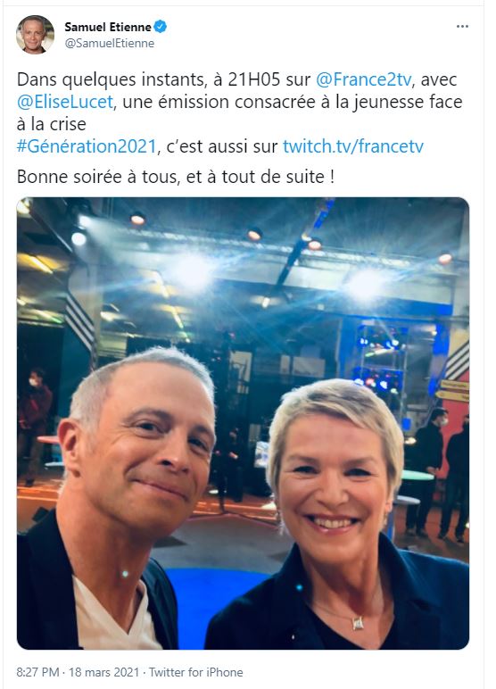 et aussi sur Twitter #Generation2021, toutes les équipes digitales sont sur le coup et puis voilà, faut qu’on soit utile pour les jeunes."