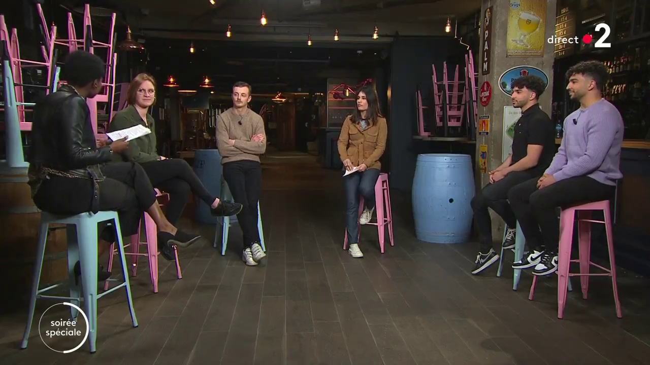 Dans ce décor stéréotypé, Elise Lucet et Samuel Etienne vont donc écouter les témoignages de Jeanne, Elsa, Andy, Hugo, Sam, Matéo et bien d’autres. "On va écouter vos inquiétudes, vos doutes, vos angoisses mais aussi vos espoirs, vos engagements, vos rêves"