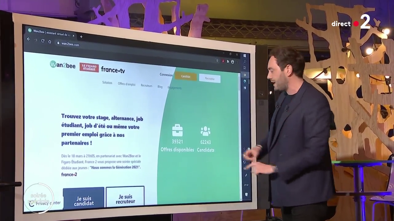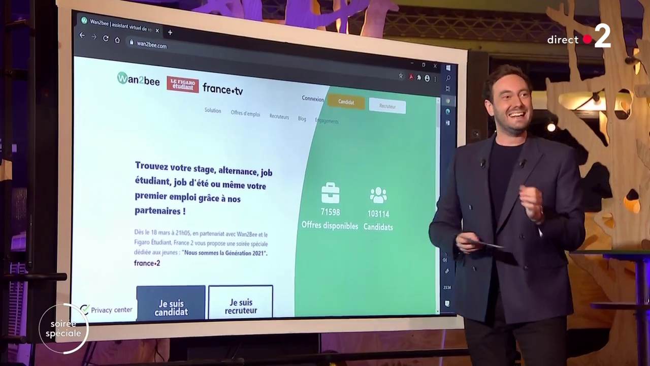 Parmi les partenaires de ce double-live, il y a Wan2bee. Wan2bee ? C’est le journaliste Adrien Rohard qui en parle le mieux : "C’est une plateforme géniale, extrêmement intelligente où vous pourrez retrouver plein d’offres d’emplois."