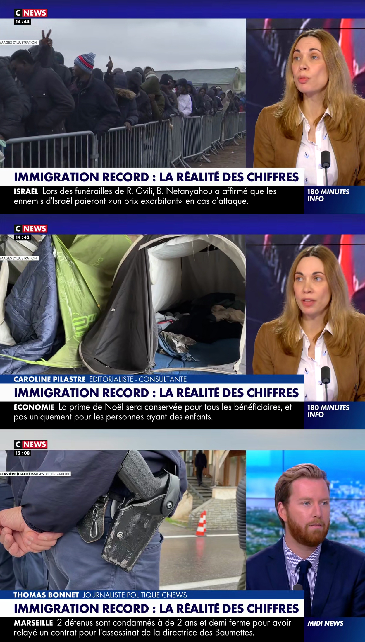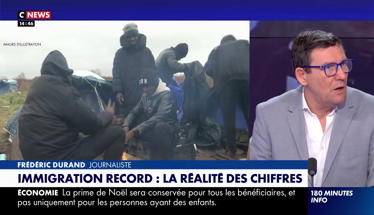 Et c'est jour de fête pour tout le monde, les éditorialistes mais aussi les documentalistes de Bolloré qui ont mis le paquet sur les images d'illustration. L'immigration ? Ce sont des files d'attente, des tentes sous les ponts, des douaniers qui attendent avec des flingues…