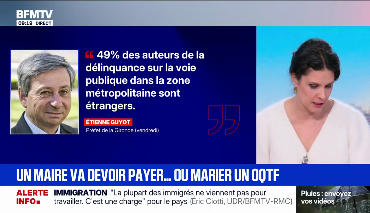 Ah, et on oubliait. Au milieu de ces chiffres, Apolline de Malherbe a eu la bonne idée d'évoquer l'histoire d'un étranger sous OQTF, censé quitter le territoire mais souhaitant tout de même se marier en France. Une bien belle histoire qui n'a rien à voir avec les chiffres sur l'immigration, mais on se comprend.