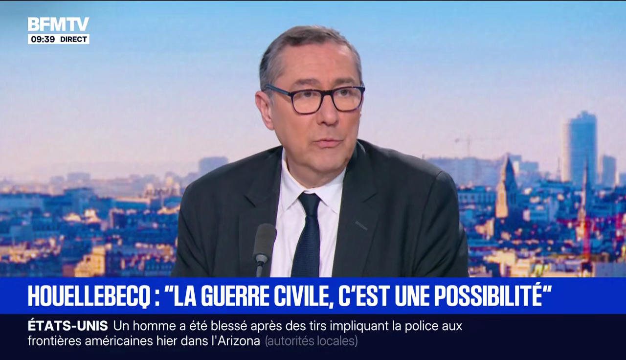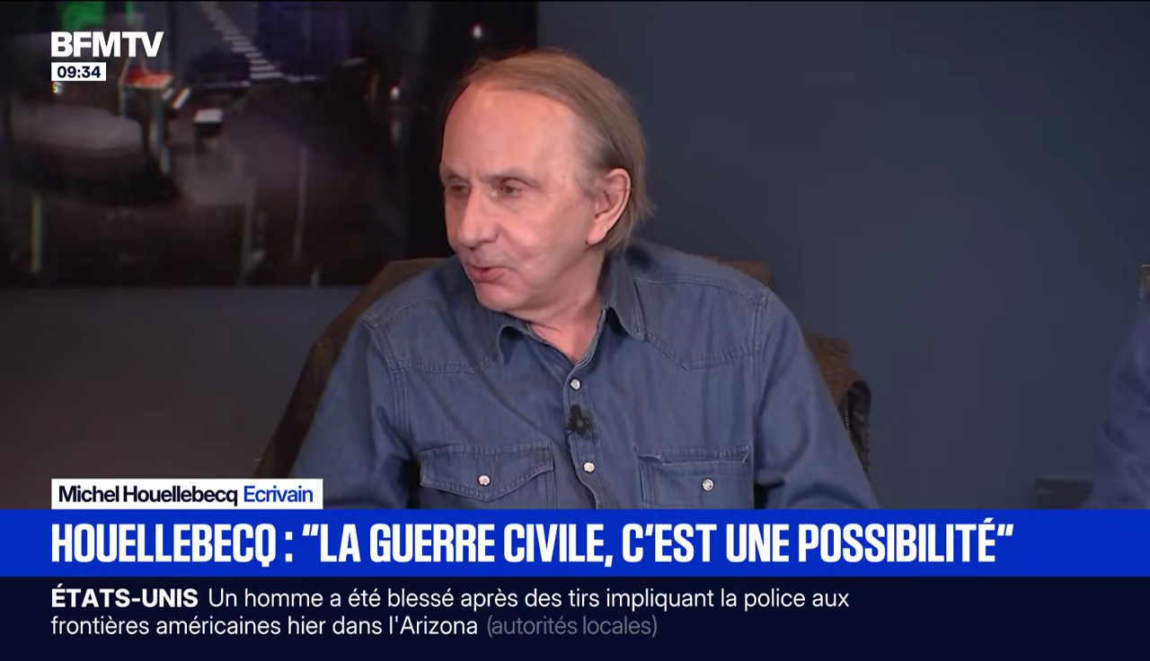 Mais pourquoi Houellebecq. On le comprend une minute après : il a accordé une interview exclusive à BFMTV. Et devinez ce que la chaîne en a retenu ? C'est écrit sur le bandeau…