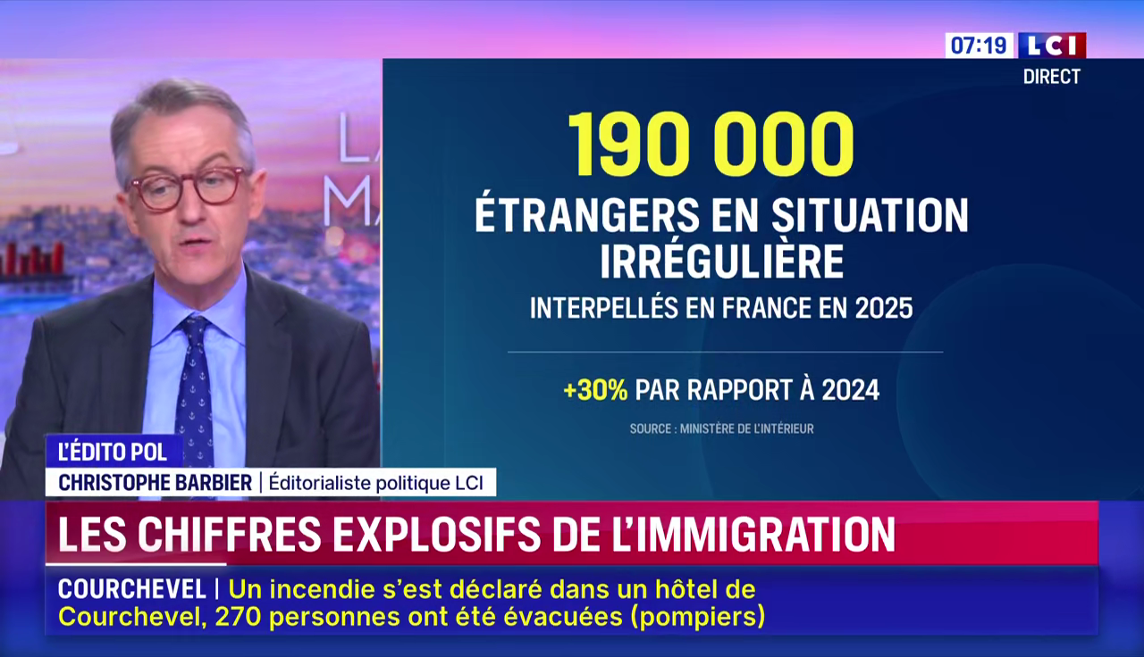 Sur LCI aussi, les chiffres de l'immigration ont alimenté l'antenne. Le propos est à peine plus nuancé. Christophe Barbier évoque non pas la hausse du nombre de titres de séjour mais "les chiffres explosifs de l'immigration".