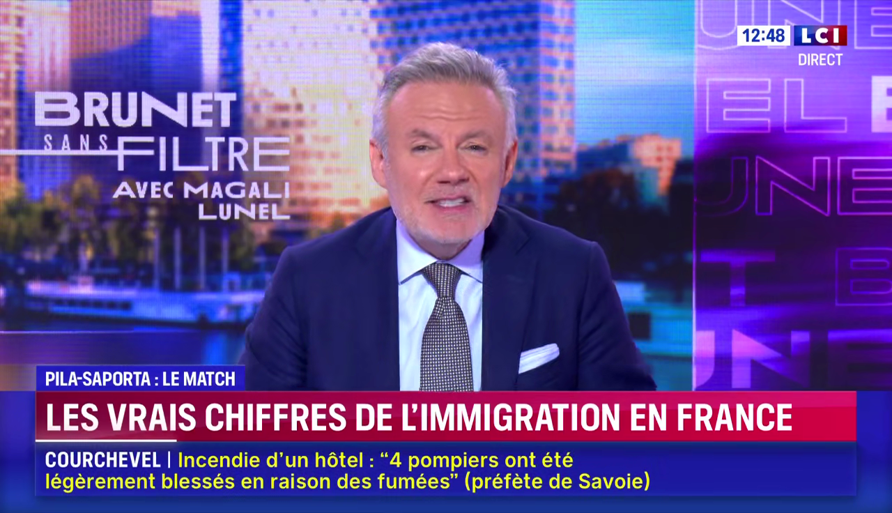 Et quand bien même la chaîne invite des éditorialistes qui ne tiennent pas de discours anti-immigrés (Isabelle Saporta et Renaud Pila), Eric Brunet veille pour recentrer le débat. La nécessité de recourir à l'immigration pour couvrir les besoins de main d'œuvre dans certains secteurs ? Ça le rend fou Brunet : "Non mais attendez, vous partez du principe que plus jamais en France des gens qui disposent de papiers français, du passeport français, n'accepteront de faire des métiers. Mais vous vous trompez, il y a des ouvriers dans le bâtiment qui sont français, enfin j'hallucine quand je dis ça. Il y a des serveurs de restaurants qui sont français".