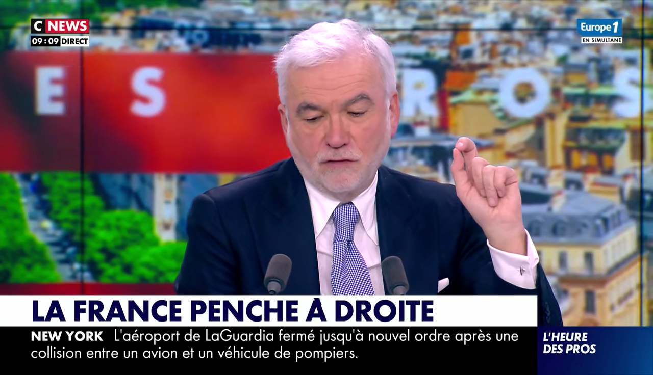 Ce lundi 23 mars, sur CNews, Pascal Praud a prévu de débattre des résultats des municipales, du danger lié à la victoire de LFI dans certaines villes et de commenter ce qui s'apparente à une bonne nouvelle, affichée sur le bandeau : "La France penche à droite"