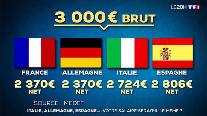 en France. Selon lui, on devrait d'ailleurs verser la totalité du salaire brut au salarié, à charge pour lui de "faire les chèques à l'assurance santé, à l'Unedic, pour bien voir ce que ça coûte"