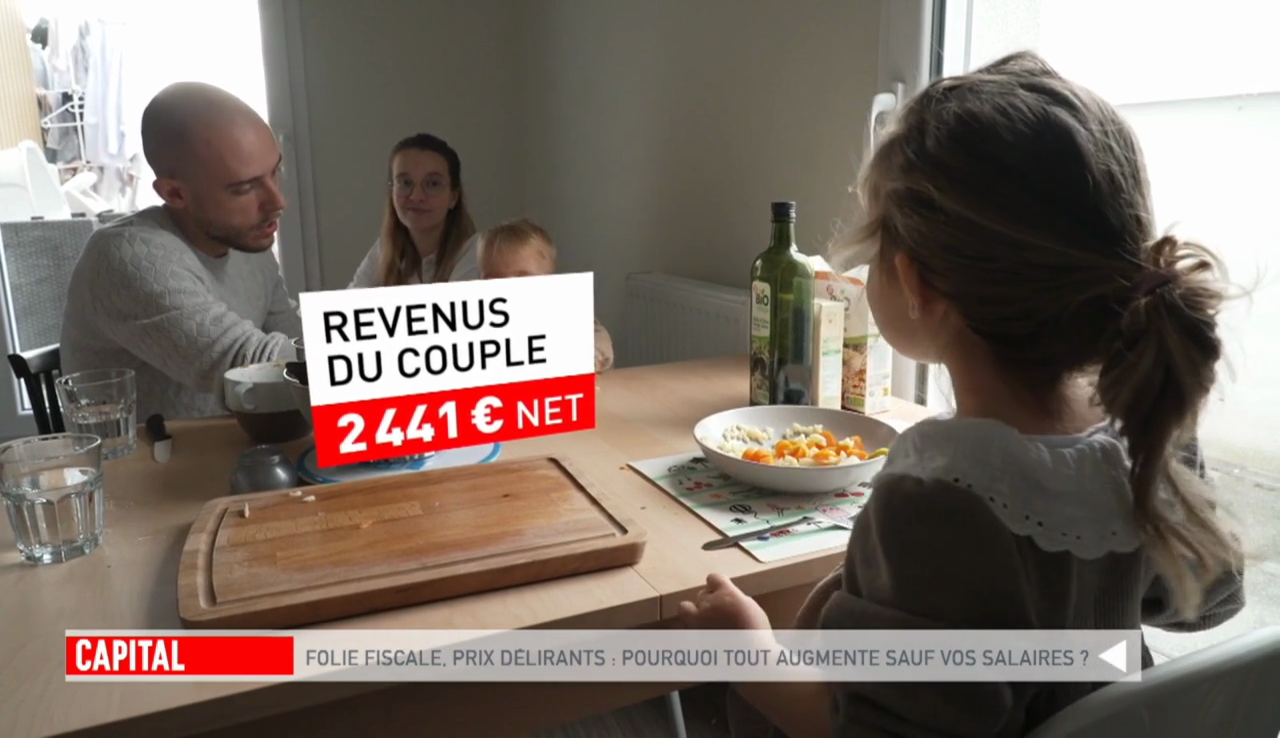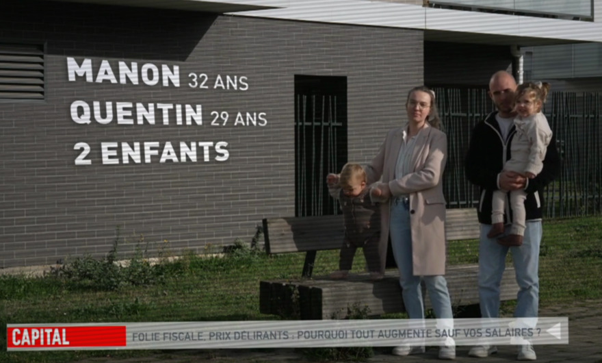 Quentin est surveillant de collège, il gagne 1250 euros net par mois. Animatrice en Ehpad, Manon est à 80% pour s'occuper de son fils le vendredi et gagne 1040 euros par mois. A eux deux, avec les aides sociales, ils gagnent 2441 euros. La précision des chiffres, c'est la garantie d'un reportage rigoureux.