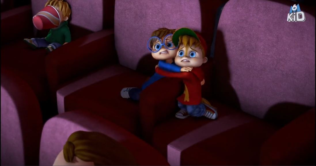 Plus rapide, plus survolté, et aussi plus moderne dans les thèmes traités. Dans l’un des épisodes, Alvin et ses amis sont au cinéma. Attention, ça fait peur :