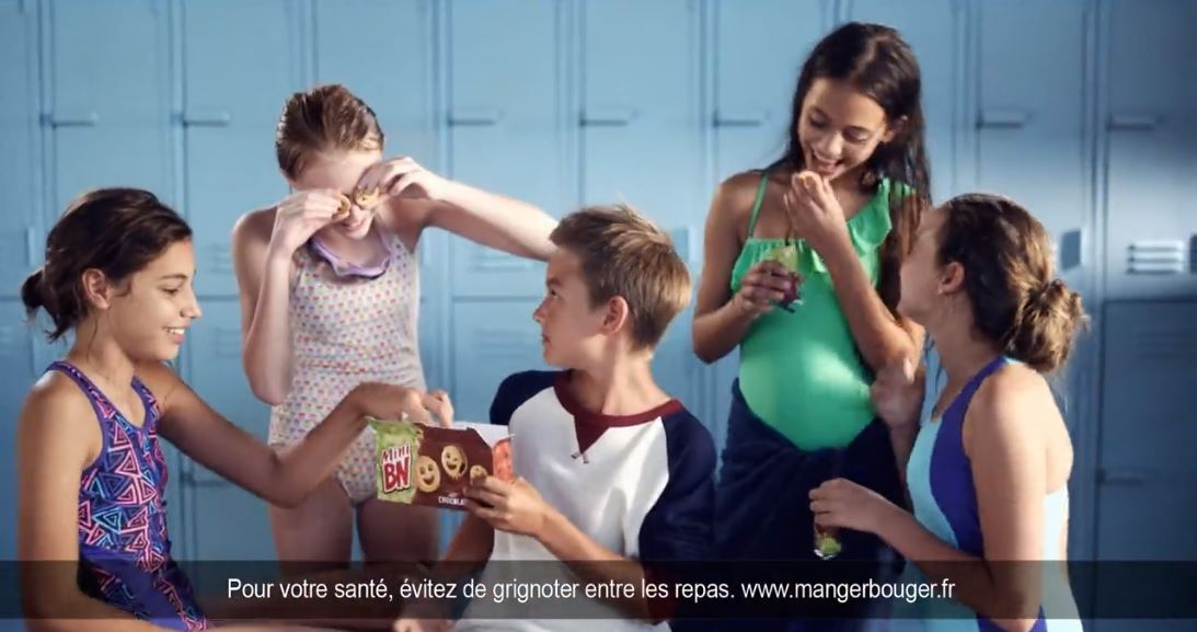 Ces panneaux censés marquer clairement la différence de nature des programmes sont complètement inopérants pour les plus petits. Et c’est exactement la même chose sur TF1 : le mot publicité apparaît sur le panneau mais la voix off insiste uniquement sur manger/bouger.