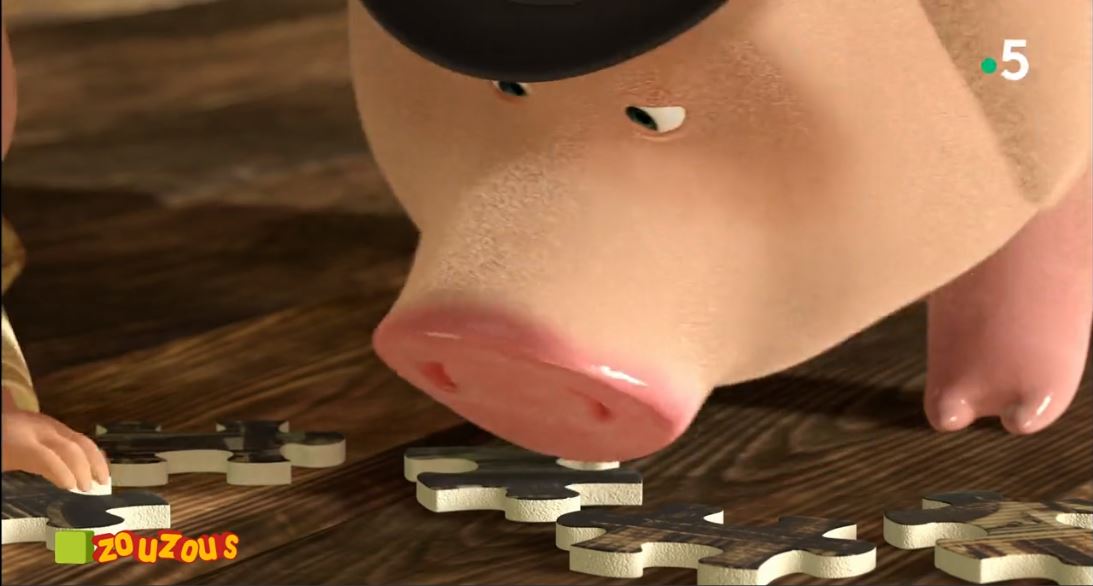 Un cochon qui fait un puzzle