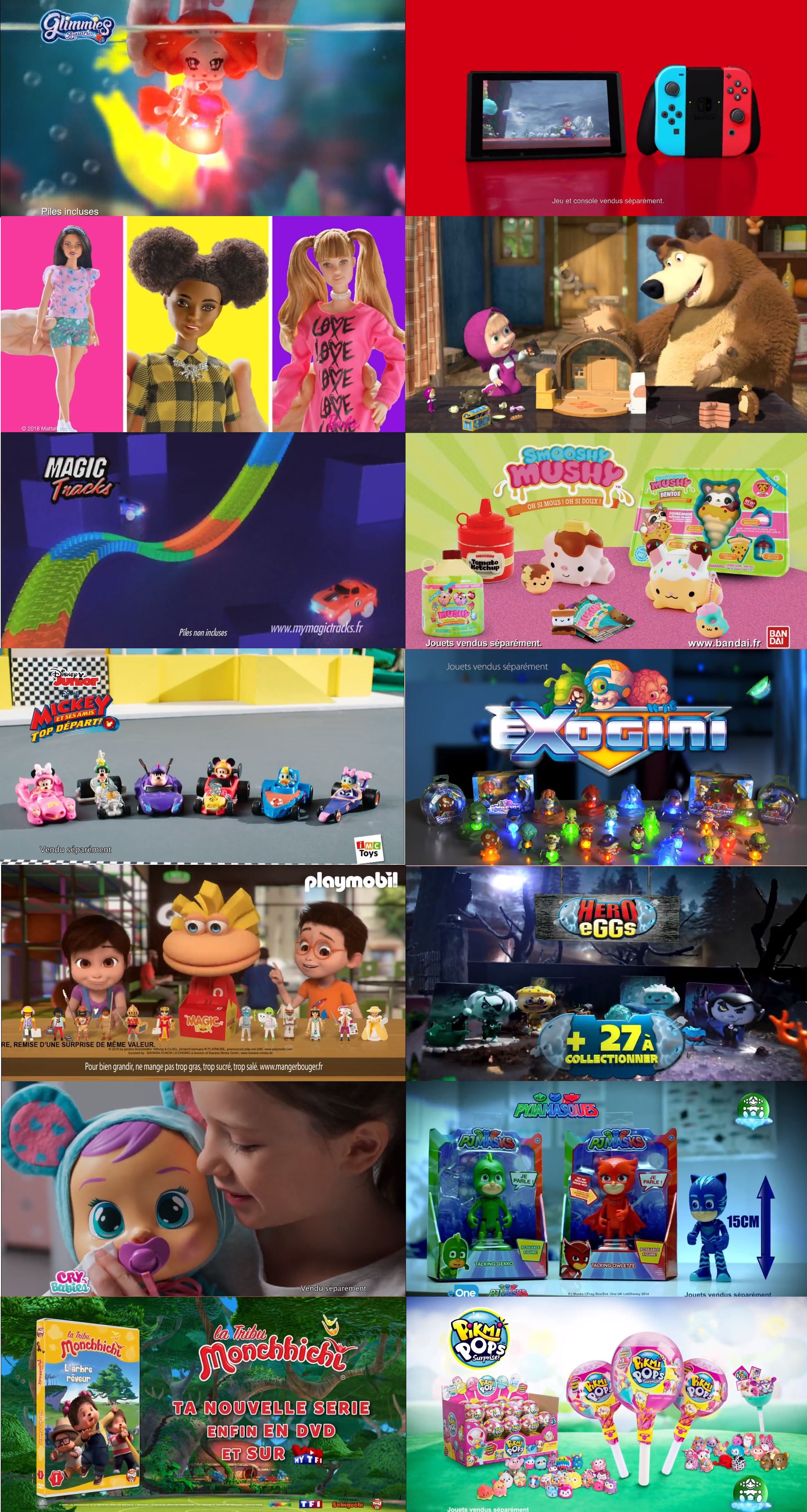 Mais au-delà du fond stéréotypé, c’est la cadence qui surprend le plus. Dans la matinale de TF1 par exemple, en 3min30, Lucas, Léa et leurs amis verront 14 publicités différentes. 14 ! Glimmies Aquaria, Nintendo Switch, Barbie fashionistas, La cabane Michka et masha, Magic tracks, Smooshy Mushy, Les voitures de Mickey, Exogini, Quick, Hero Eggs, Cry Babies, Pyjamask, La Tribu Monchhichi, Pikmo pops...