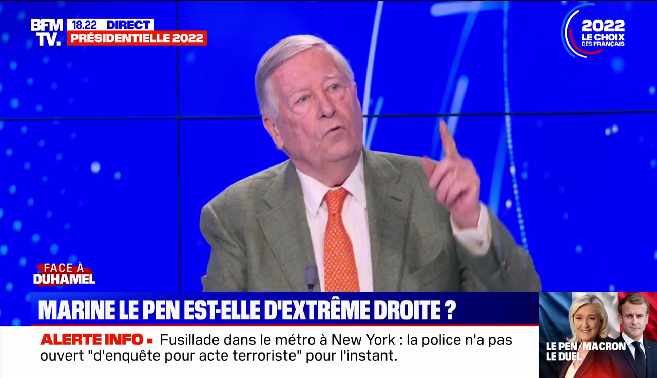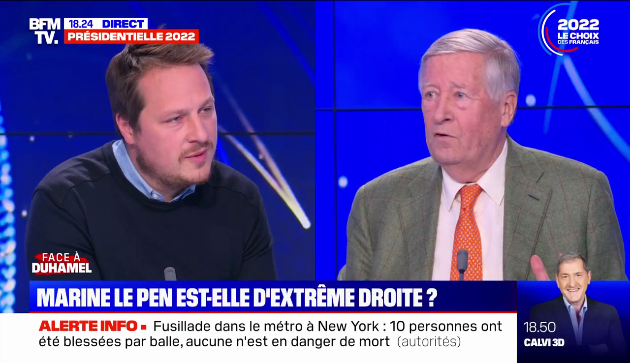Sur BFMTV par exemple, il y a eu un vrai débat entre un vétéran, Alain Duhamel (onze campagnes présidentielles au compteur) pour qui "Marine Le Pen, c'est l'extrême droite qui avance masquée"