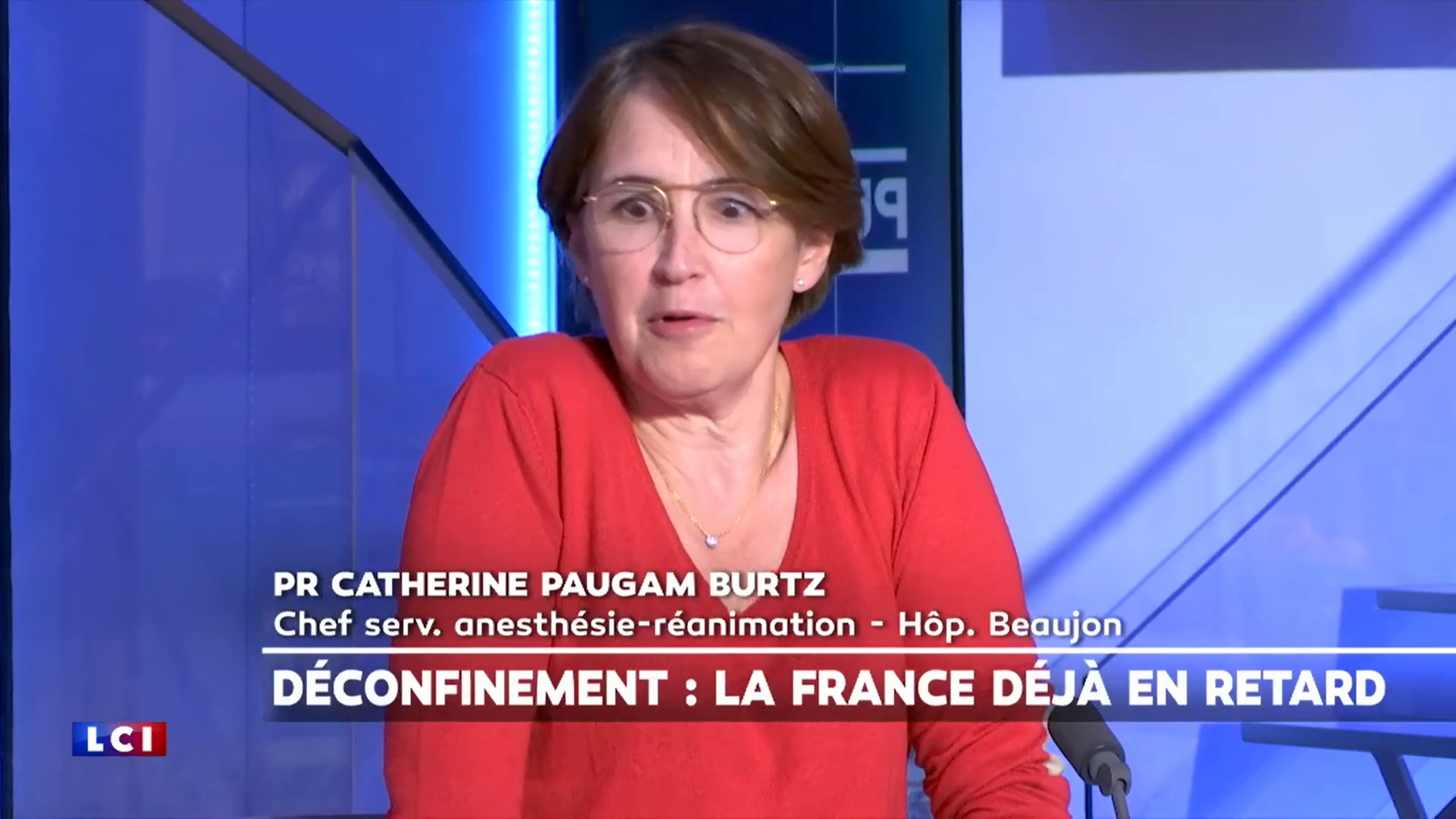 La peur ? Pour appuyer son propos, Pujadas peut compter sur la cheffe du service de réanimation de l’hôpital Beaujon, Catherine Paugam Burtz. Laquelle a une argumentation en béton armé : “Je vais commencer par une petite anecdote. En venant, je n’avais pas de masques dans la rue, j’ai croisé deux personnes, j’étais à deux mètres, les trottoirs sont extrêmement larges. Je me suis fait fusiller du regard et les regards étaient extrêmement…"