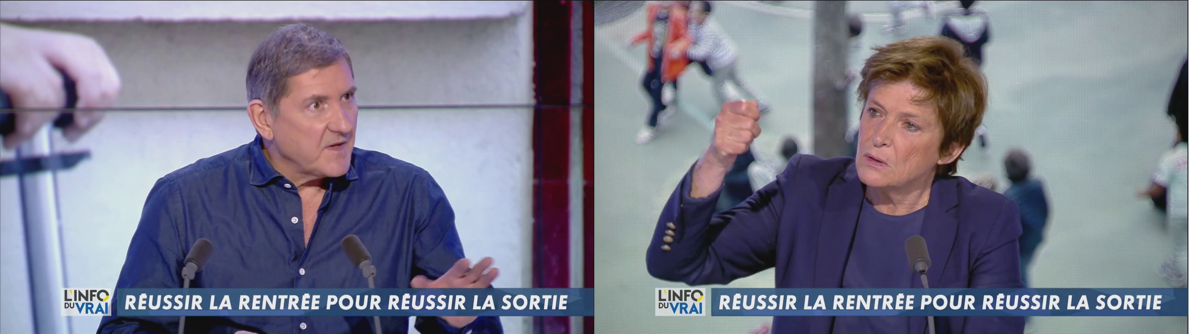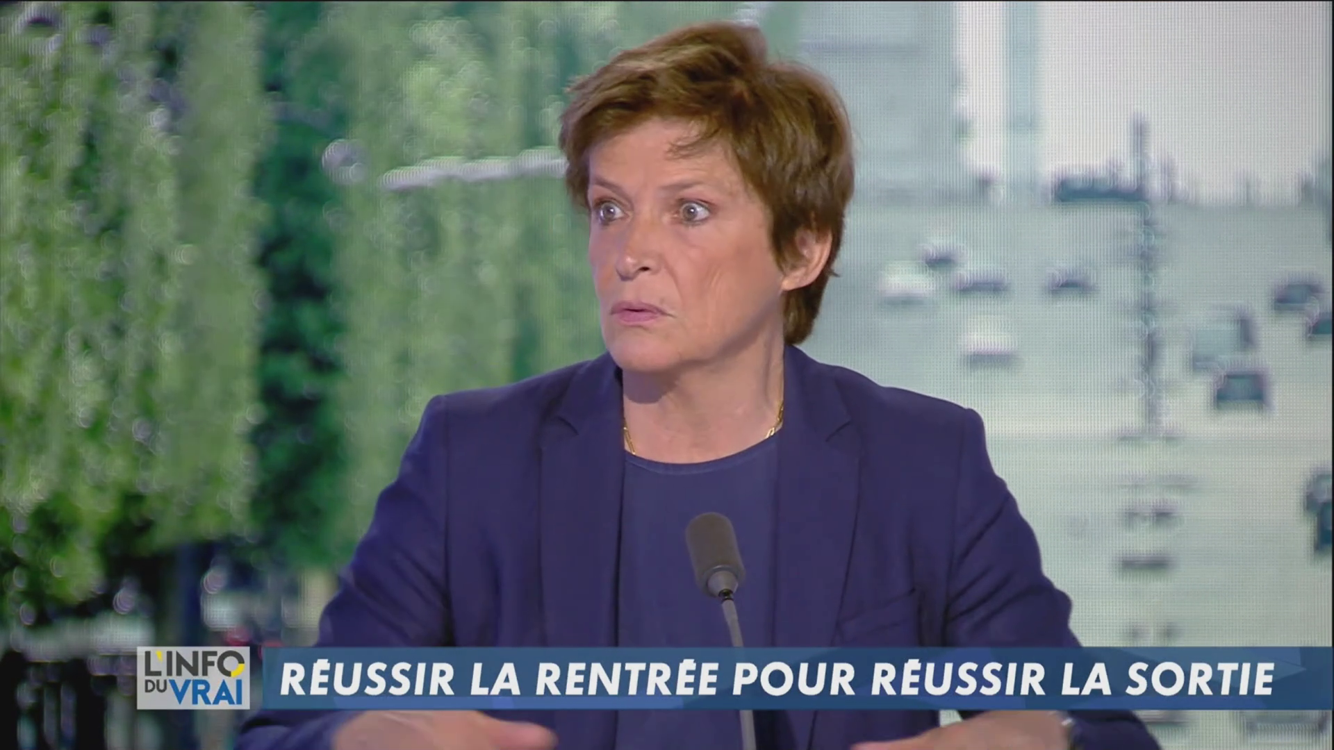 Ottenheimer - : "Alors on nous dit, une grosse difficulté, par exemple, dans les petites classes, c’est qu’il y a beaucoup de jeux, de trucs tactiles, on distribue des photocopies, on coche etc. Il n’y a plus ça. Bah on va refaire l’école comme autrefois. Ce n’était pas si mal. Tableau noir, on va apprendre b.a = ba. 3x5 = 15. La maîtresse d’école va raconter l’histoire de France a sa façon".