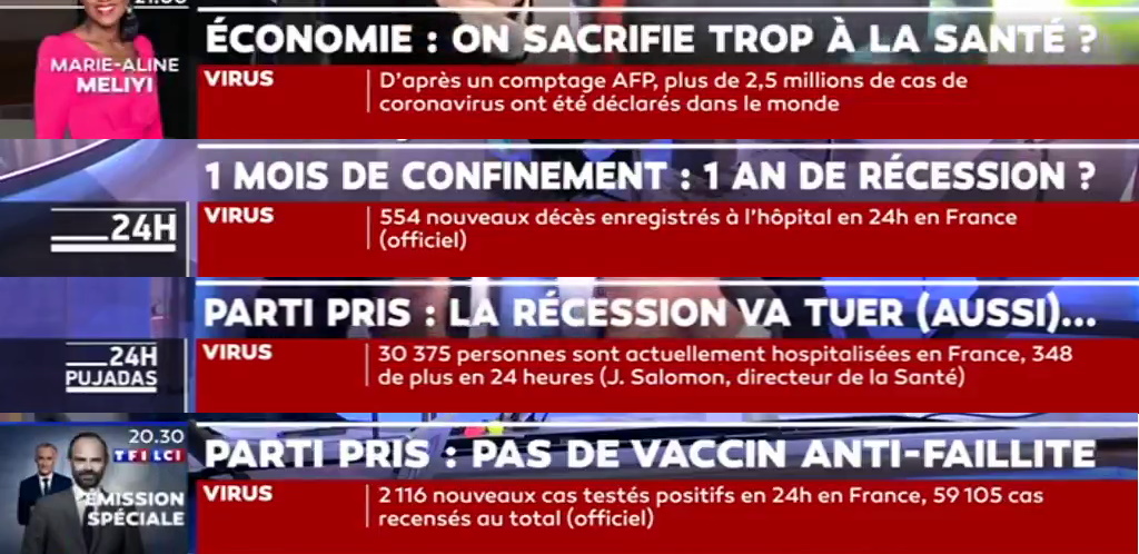 Placer les préoccupations sanitaires devant les enjeux économiques, ça les rend un peu dingues nos éditorialistes, notamment ceux de LCI. A quelques heures de la fin du confinement, ils sont un peu nerveux. Et on peut les comprendre : ça fait plus d’un mois qu’ils trépignent...