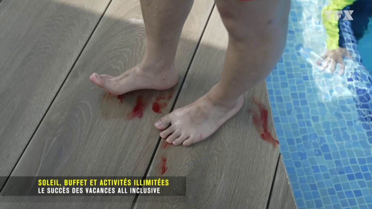 Jusqu'à ce que le père de famille saute dans la piscine et s'entaille un pied avec un bout de carrelage cassé.