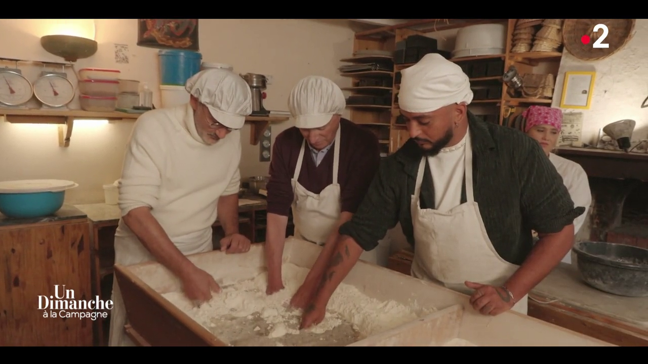 Évidemment, quand on prépare un repas, y'a toujours ce moment où tu sais que t'as oublié un truc. Le vin, le fromage ou une épice. Là, pas de bol, ils ont oublié le pain. Mais bon, on est à la campagne, alors que va leur proposer Fred d'après vous ? De rencontrer un meunier. "Je vous propose de faire du pain comme on le faisait au Moyen-Âge",