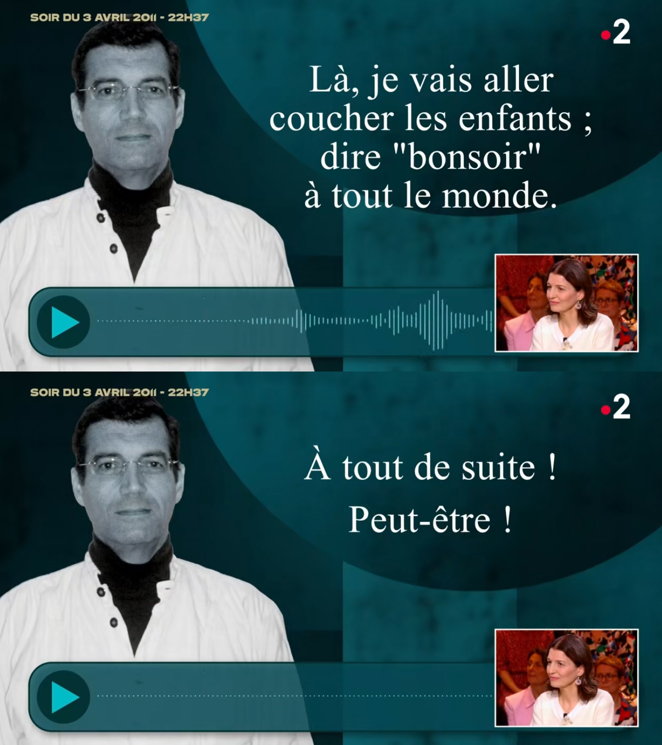 , ils ont le sourire. Ils savent qu'ils s'apprêtent à enregistrer une "séquence télé" qui va tourner (ça n'a pas loupé : gros score d'audience ce soir-là).