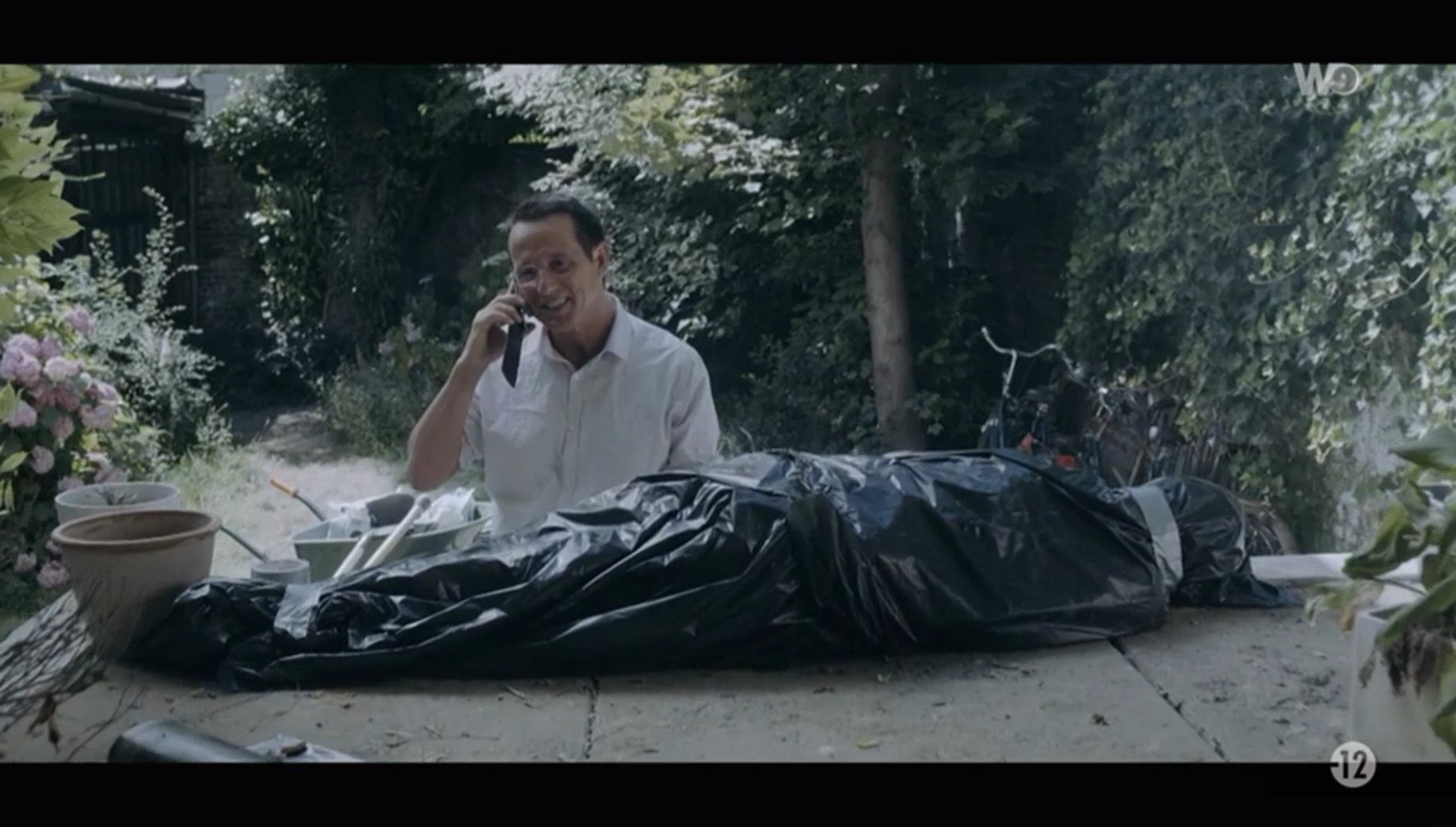 Après avoir tué ses quatre enfants et sa femme (on vous épargne les captures d'écran), Presque-Ligonnès s'enfuit dans le sud de la France. Les enquêteurs perdent sa trace sur un parking d'un hôtel Formule 1 à Roquebrune-sur-Argens. Et depuis, plus rien. Est-il en fuite ? S'est-il suicidé ? On n'en sait rien, mais le docu-fiction du groupe M6 a quand même une piste, puisqu'il se termine dans un cimetière du sud de la France avec un acteur aux abois…