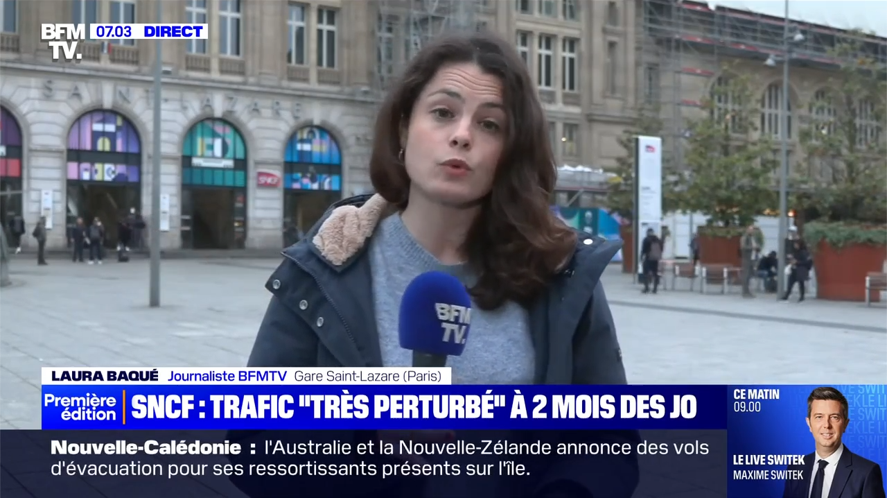 Une gare, un jour de grève. C'est une épreuve orale assez classique pour les étudiants de l'École des Journalistes-De-Duplex. Ce mardi 21 mai, à 7 h du matin, Laura était donc assez confiante quand elle a pris l'antenne sur BFMTV car elle avait bien révisé les mots clés du duplex grève.