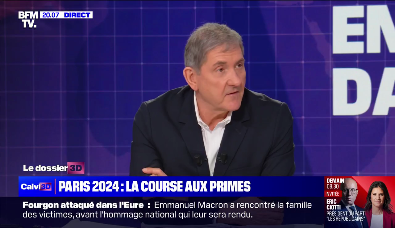 Interrogé sur le coût des primes pour les finances publiques, Olivier Babeau, le libéral télévisuel, n'a pas plus d'informations que ça (mais il a bossé ses punchlines) : "Il y a quand même un jeu de chantage, et pour filer la métaphore olympique, c'est quand même pas très sport. [...] Ça va être payé avec nos impôts."