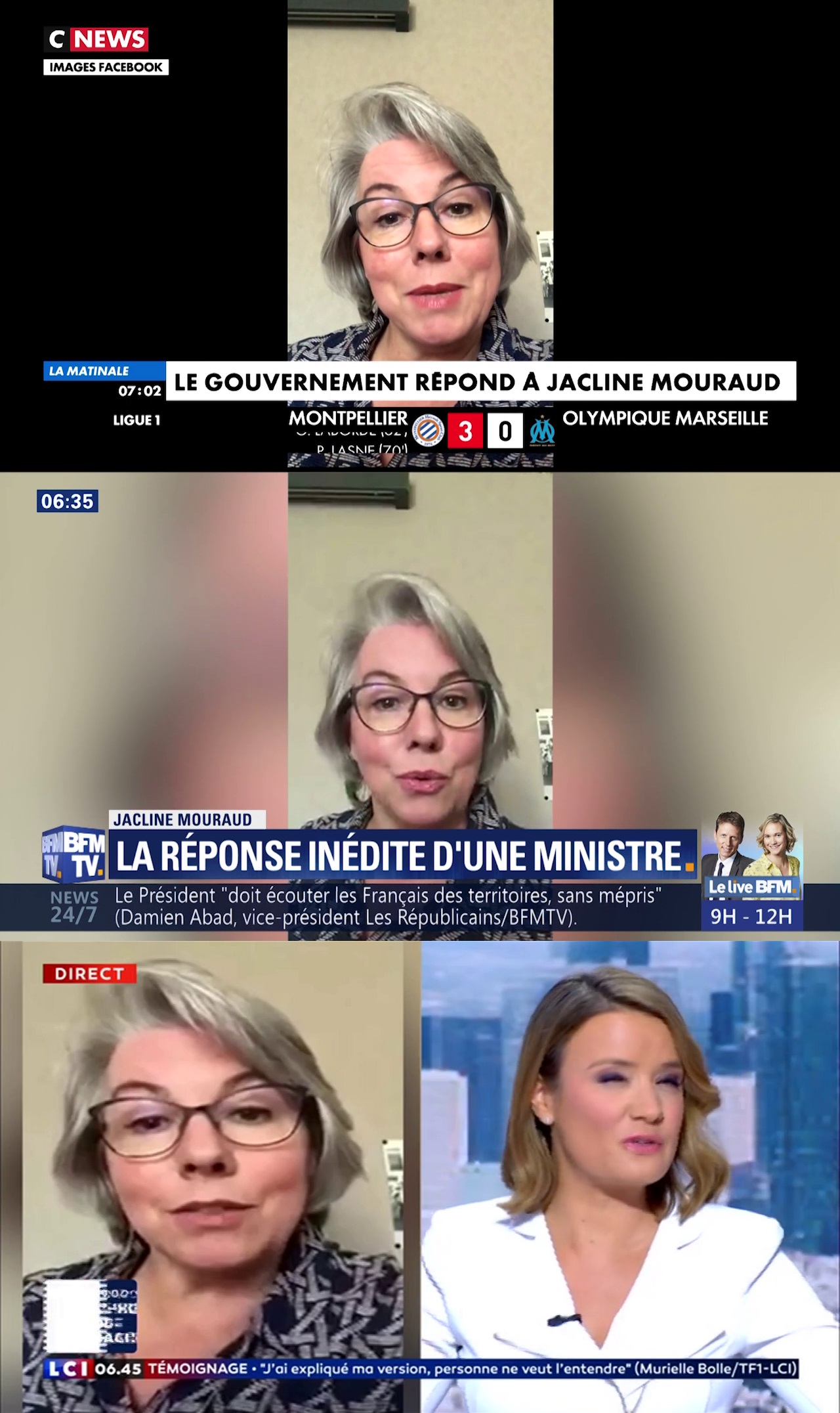 Et parmi les Français, il y a la fameuse Jacline Mouraud. En postant une vidéo de contestation sur les réseaux sociaux (5 millions de vues), cette inconnue est devenue la figure emblématique du mouvement, et ce d’autant plus facilement que la secrétaire d’Etat Emmanuelle Wargon lui a répondu dans la foulée directement sur les réseaux sociaux. Buzz garanti et reprise systématique sur les chaînes d’info en continu (avec une mention spéciale à LCI qui a réussi à l’avoir en direct au téléphone à 6h45)