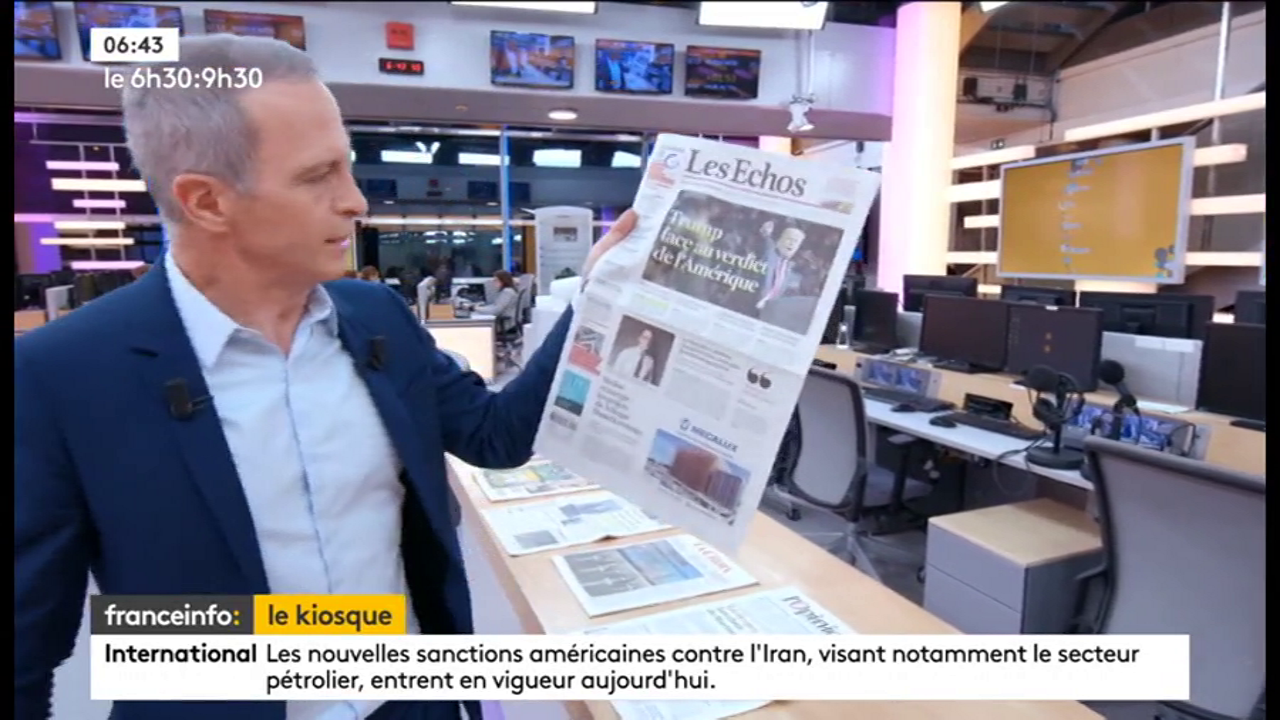 (France 2). Un vrai professionnel de l’exercice, ce Patrice ! Ce n’est donc pas étonnant que Franceinfo ait fait appel à lui. Surtout qu’il ne doit pas coûter très cher car figurez-vous qu’il fait exactement la même revue de presse sur France 2 et sur Franceinfo (et accessoirement, il fait aussi son sport du matin vu qu’il doit courir entre les deux plateaux). Un bel exercice qui mériterait le César du meilleur acteur dans un second rôle, avec un journal :