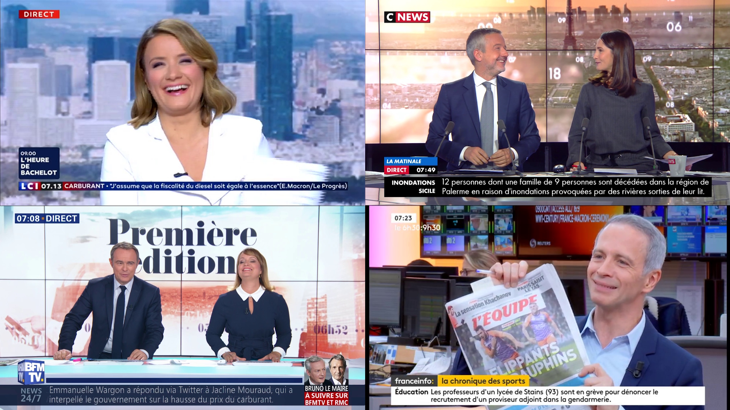 Il est 6h, nous sommes le lundi 5 novembre. Bienvenue sur BFMTV, LCI, Cnews et Franceinfo. Une matinale de chaîne d’info en continu, c’est une alternance d’actu et de bonne humeur.