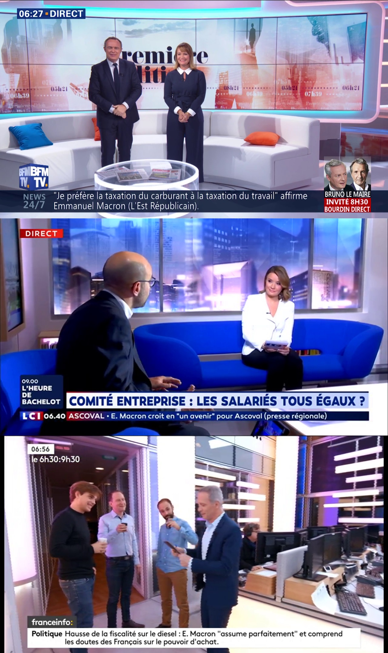 Des moments de détente… sur canapé (BFMTV, LCI) ou autour d’un café (Franceinfo)