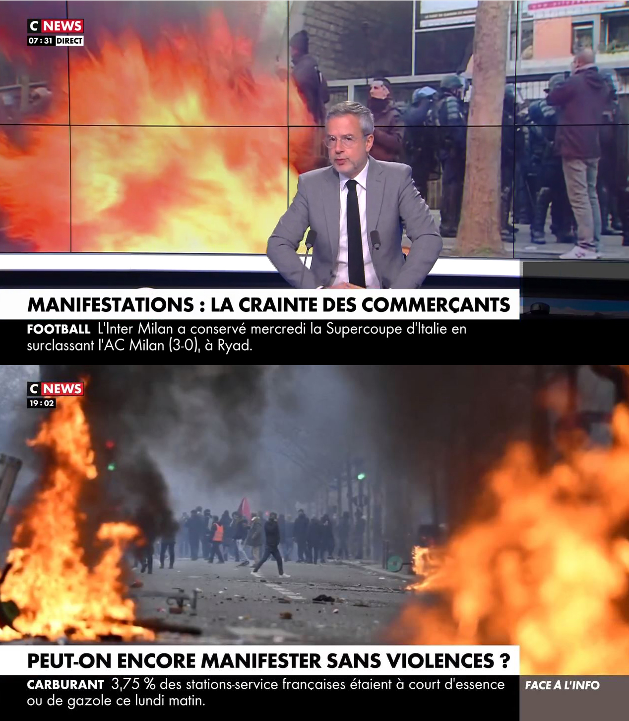 Oui, cette semaine, ces chaînes d'info ont diffusé de nombreuses images d'archives anxiogènes dans les jours qui ont précédé la mobilisation du 19 janvier. La crainte des débordements, certainement.