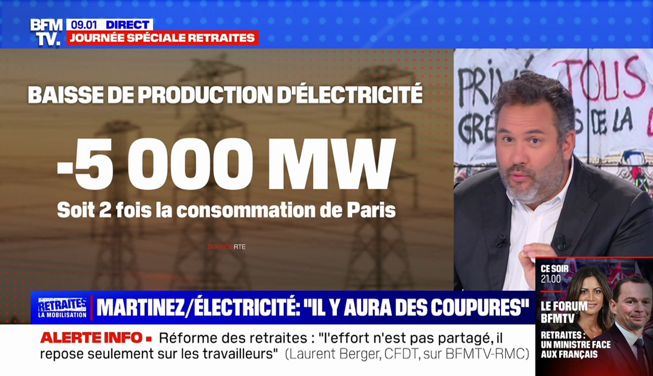 explique le journaliste. RTE, le gestionnaire du réseau, demande à l'instant aux syndicats d'arrêter immédiatement cette action. Pourquoi ? Parce qu'il y a un risque réel de coupures de courant."