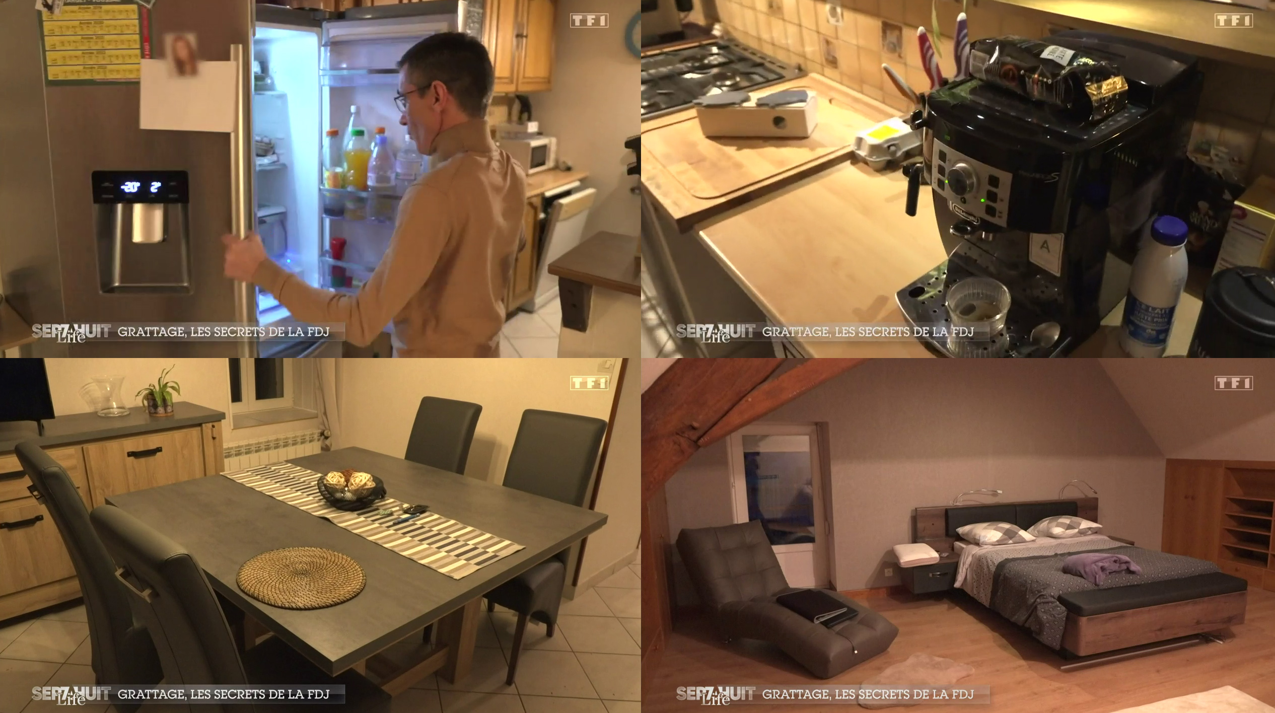 . Si si, il s'est entièrement meublé grâce à la FDJ. La preuve en image : pièce par pièce, TF1 filme tout ce qu'il a pu s'acheter (un frigo, une gazinière à "600 euros"