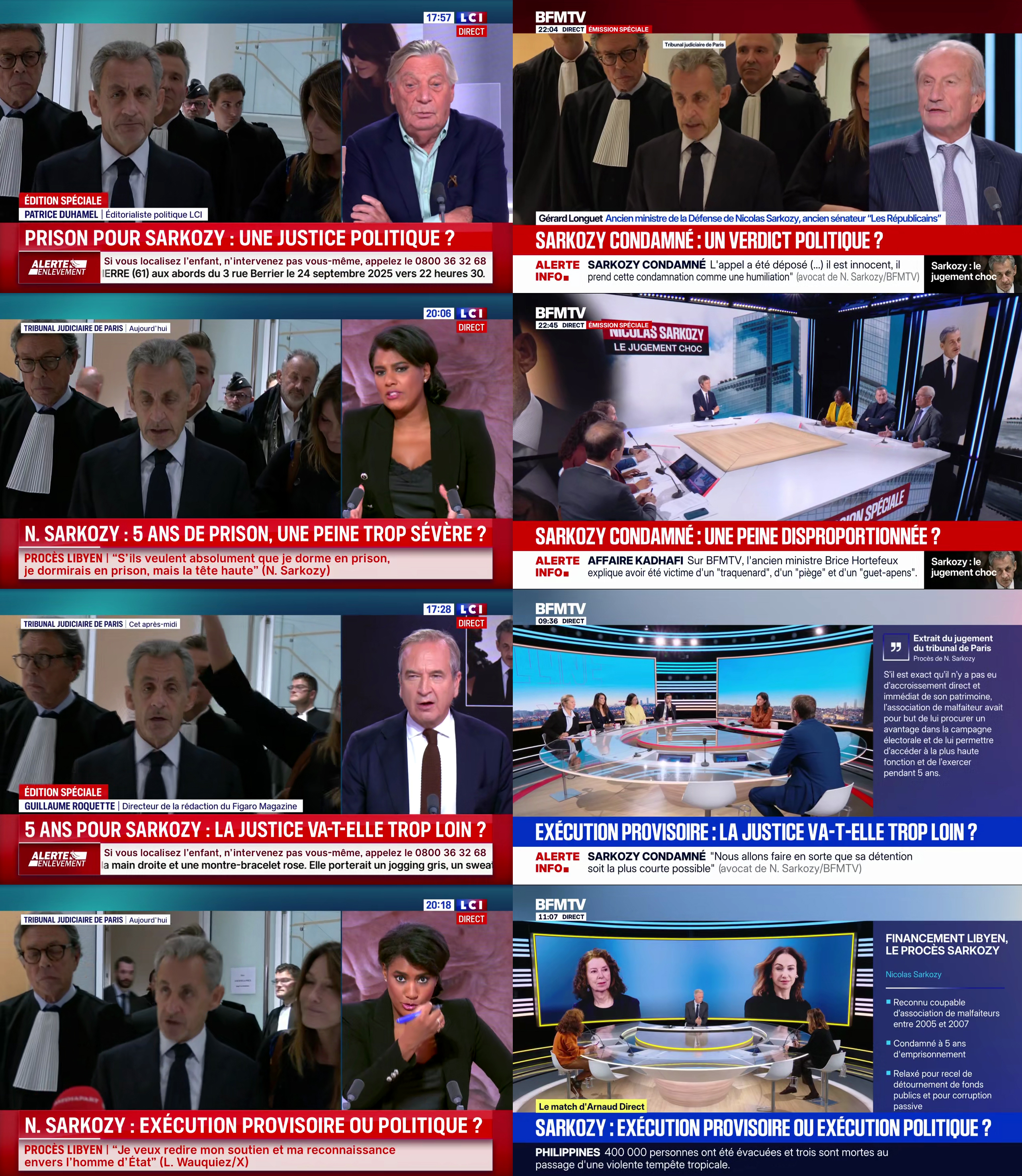 Oui, en France, quand un ancien président de la République est condamné pour avoir voulu faire financer sa campagne électorale auprès de Kadhafi, les chaînes d'info insistent plutôt sur la sévérité du jugement.