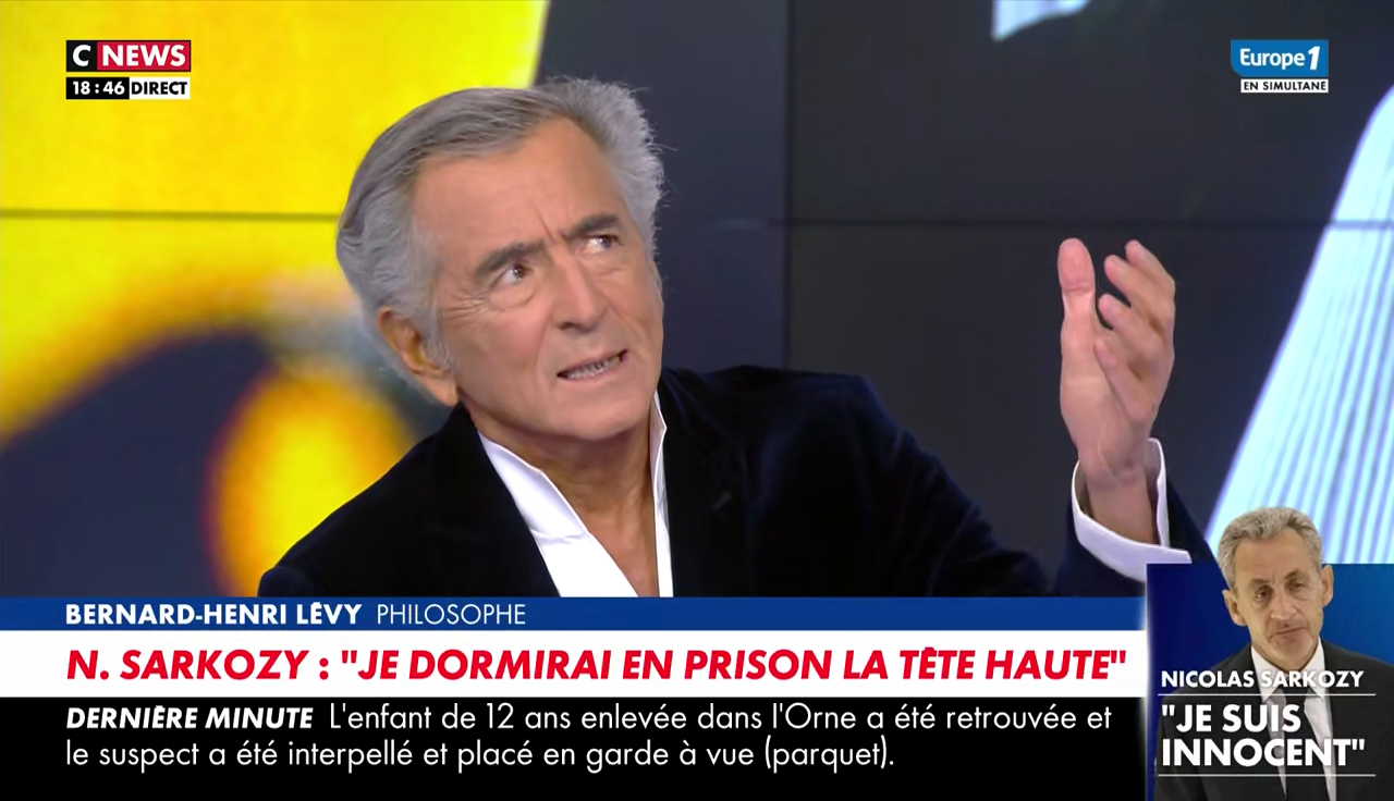 , déclare Bernard-Henri Lévy. C'est une époque, 2011, où je voyais beaucoup Nicolas Sarkozy. J'ai l'intime conviction qu'il n'est pas coupable de ce qui lui est reproché"