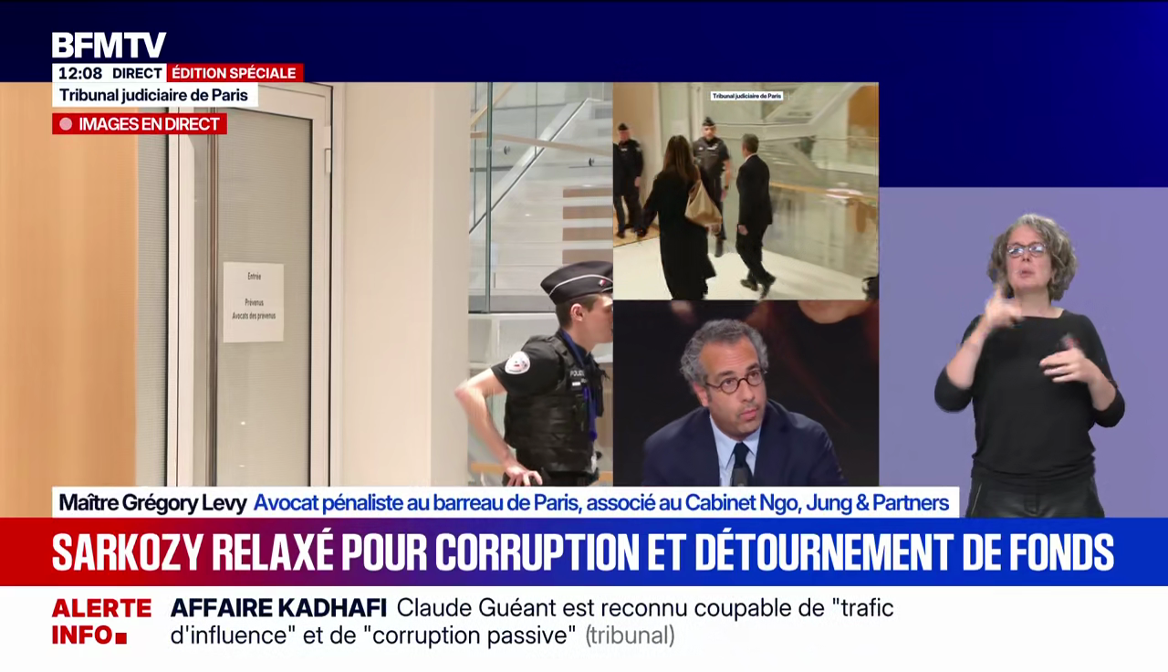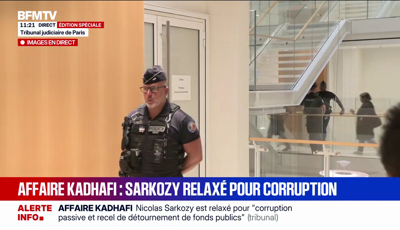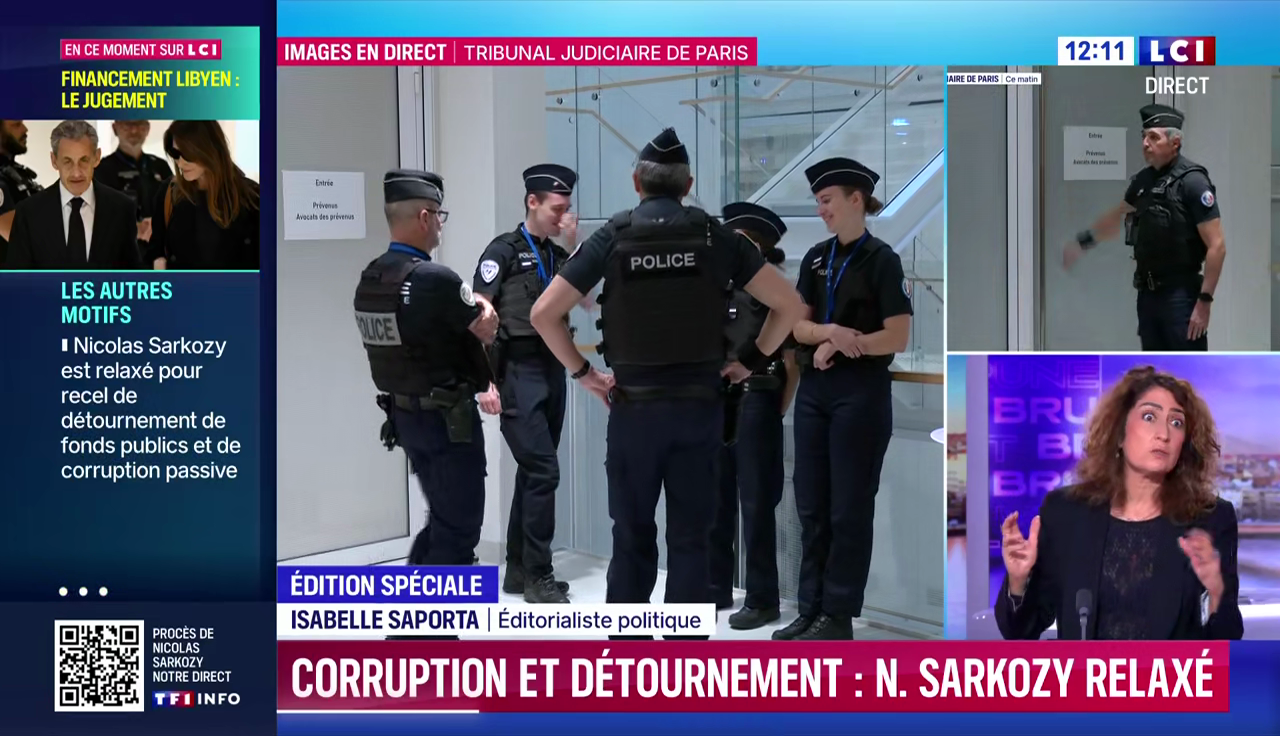 Sur les chaînes d'info, durant la matinée, avant l'annonce de la peine vers 13h, c'était déjà un peu la panique. Sarkozy obtient la relaxe pour certaines charges ("corruption passive"